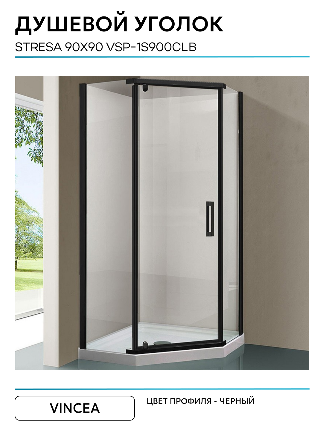 Купить Душевой уголок Vincea Stresa 90х90 VSP-1S900CLB профиль Черный стекло прозрачное черный с доставкой по всей России.