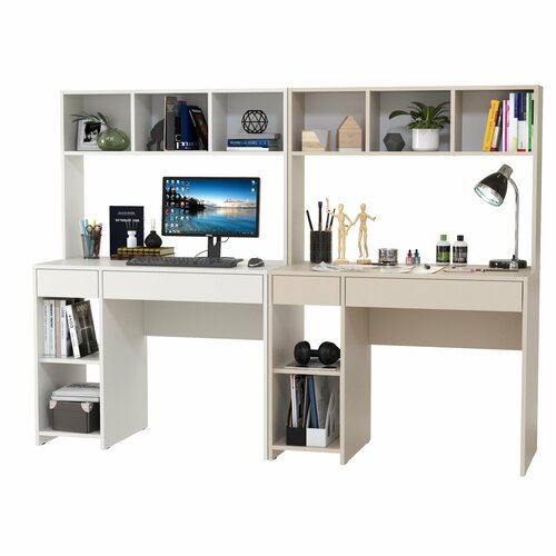 | Дополнительная информация | 2 стола, у каждого стола надстройка с открытыми нишами, открытая тумба со съёмной полкой и два выдвижных ящика стола; универсальная сборка; поставляется в разобранном виде и хорошо упаковано в гофротару вместе с необходимой фурнитурой и подробной инструкцией для сборки |