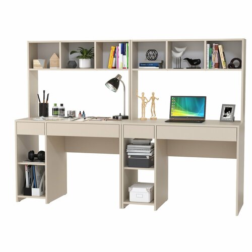 | Дополнительная информация | 2 стола, у каждого стола надстройка с открытыми нишами, открытая тумба со съёмной полкой и два выдвижных ящика стола; универсальная сборка; поставляется в разобранном виде и хорошо упаковано в гофротару вместе с необходимой фурнитурой и подробной инструкцией для сборки |