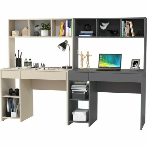 | Дополнительная информация | 2 стола, у каждого стола надстройка с открытыми нишами, открытая тумба со съёмной полкой и два выдвижных ящика стола; универсальная сборка; поставляется в разобранном виде и хорошо упаковано в гофротару вместе с необходимой фурнитурой и подробной инструкцией для сборки |