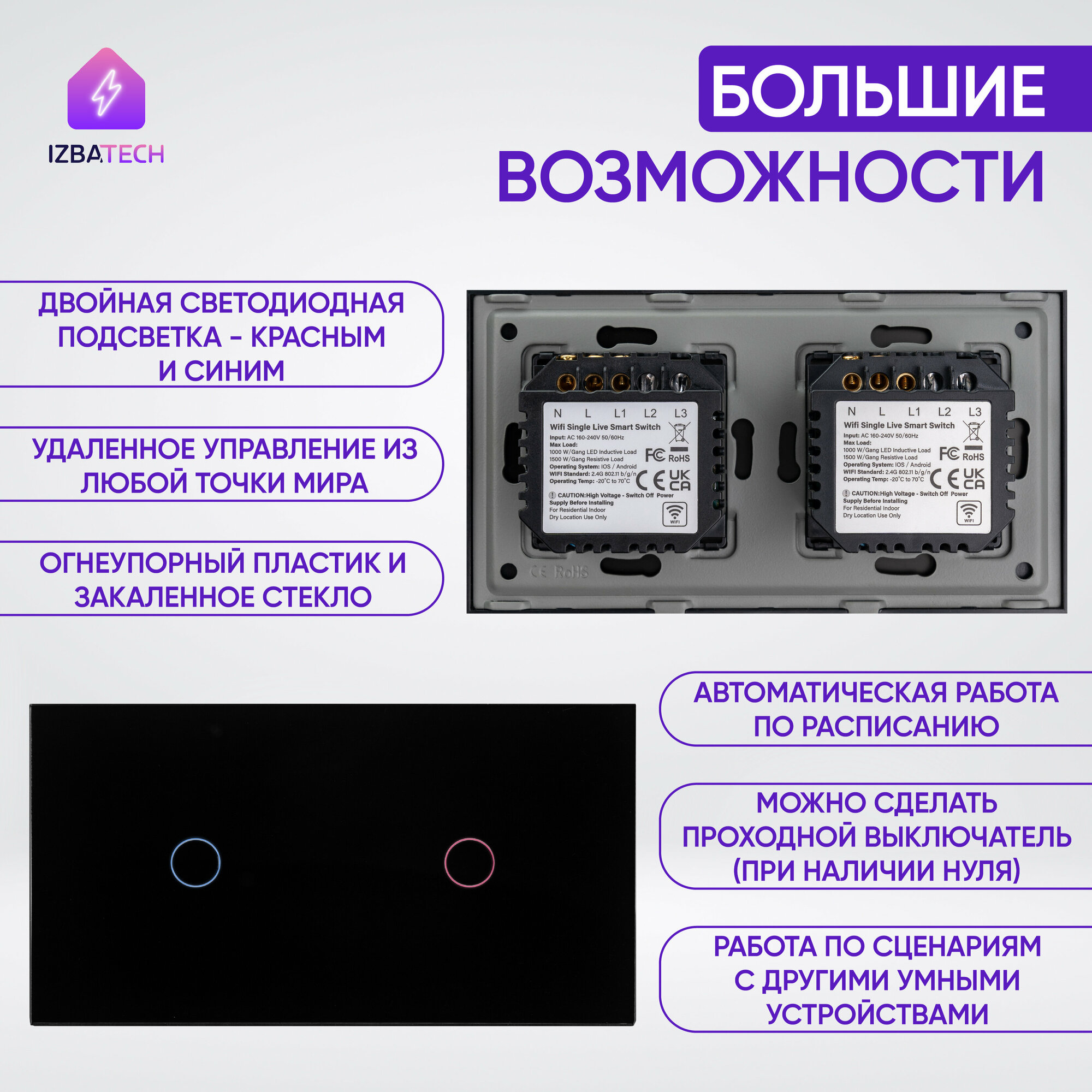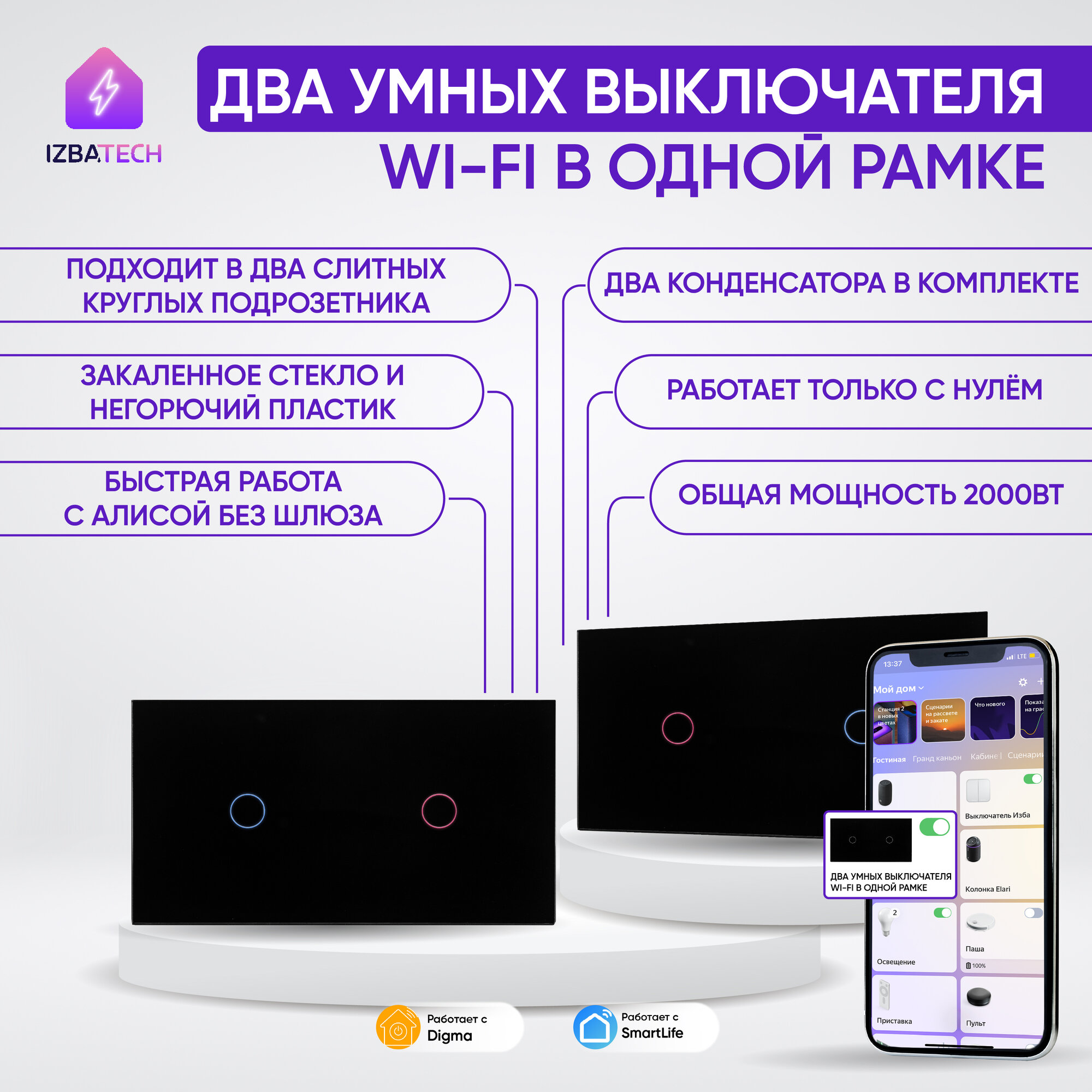 Умный сенсорный выключатель Wi-Fi на 2 поста (1 кл + 1 кл), с нулем и без нуля в одной рамке, черный, умный дом: сравнение цен, характеристики, фото, актуальное наличие и цены.
