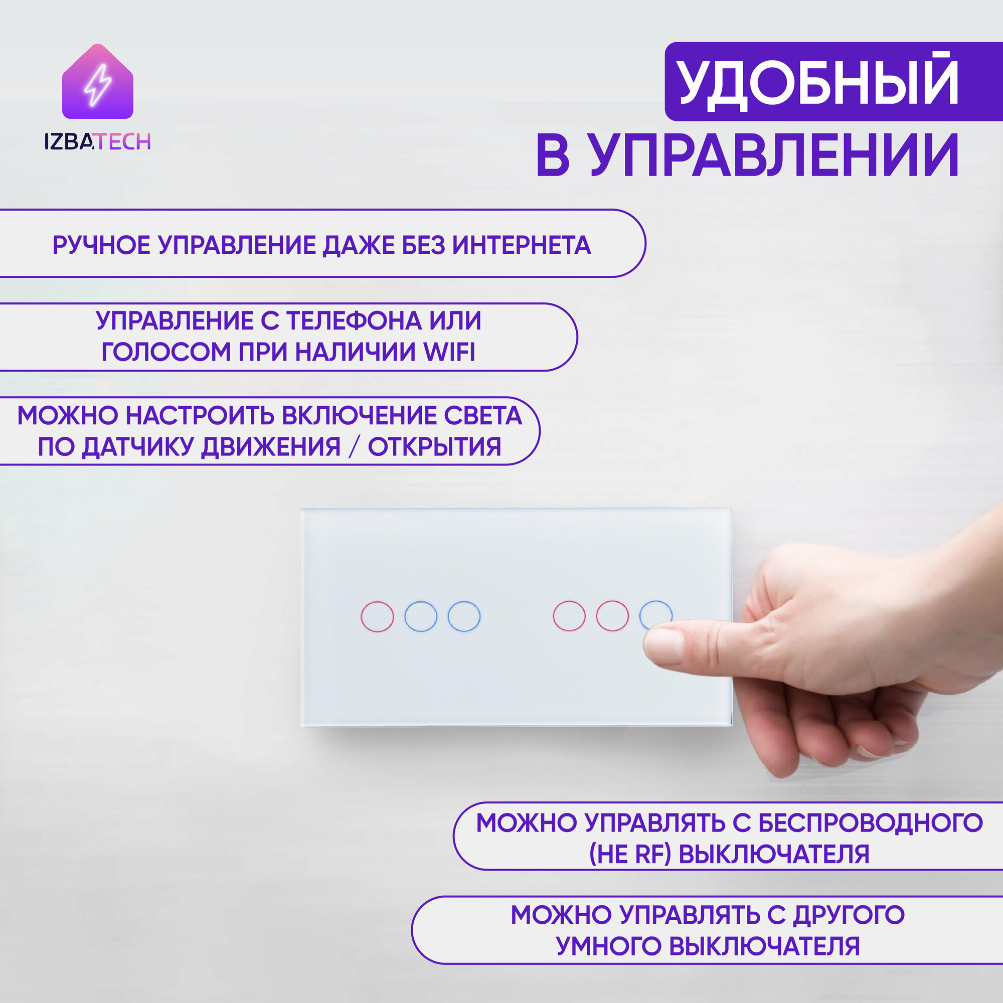 | Тип накладки | сенсорная кнопка управления |