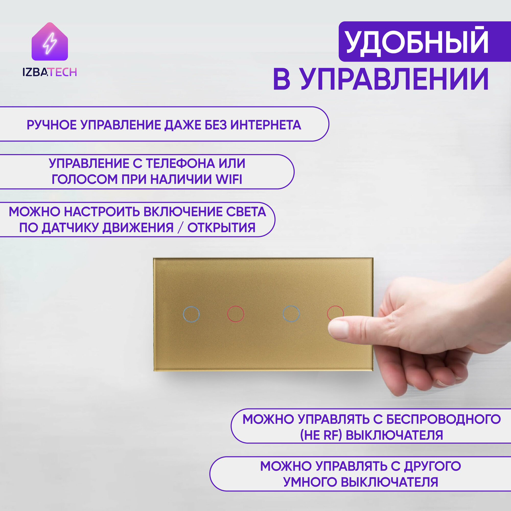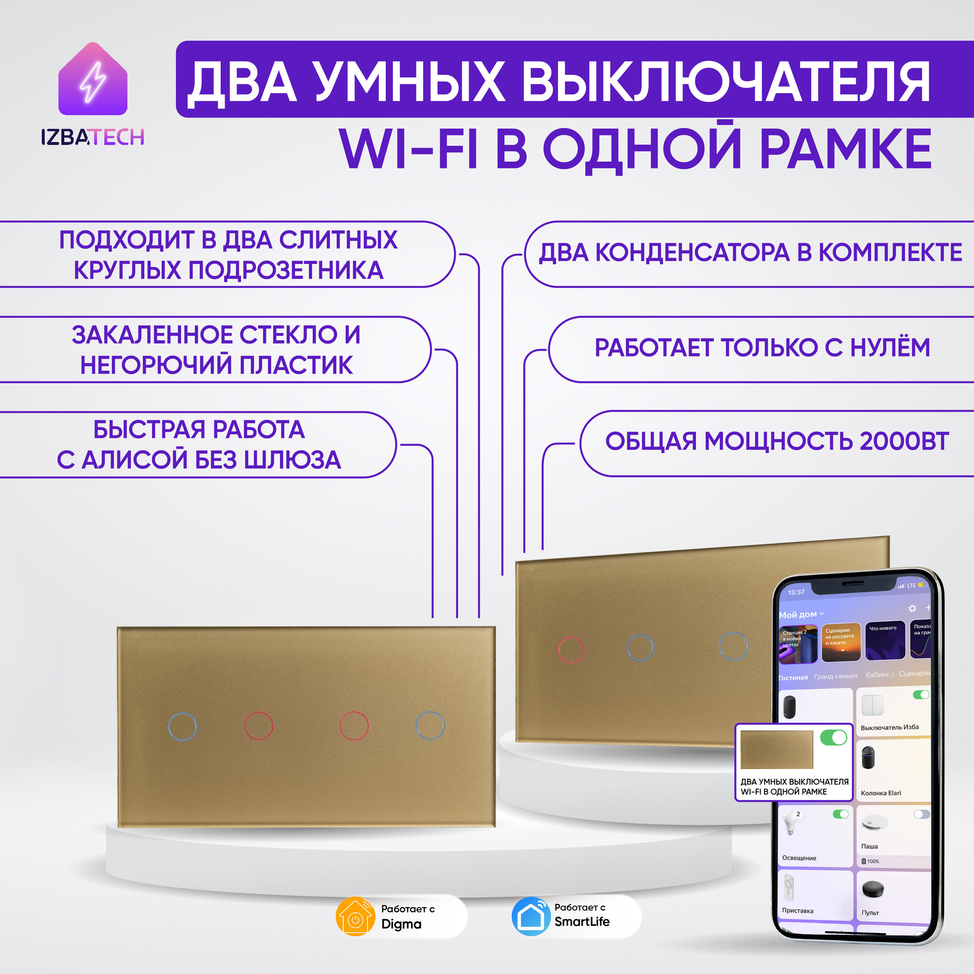 Только представьте — благодаря умному выключателю Wi-Fi на 2 поста (2 кл + 2 кл), сенсорному, с нулем и без нуля в одной рамке вы сможете создать обстановку в доме, похожую на кадры из кино.