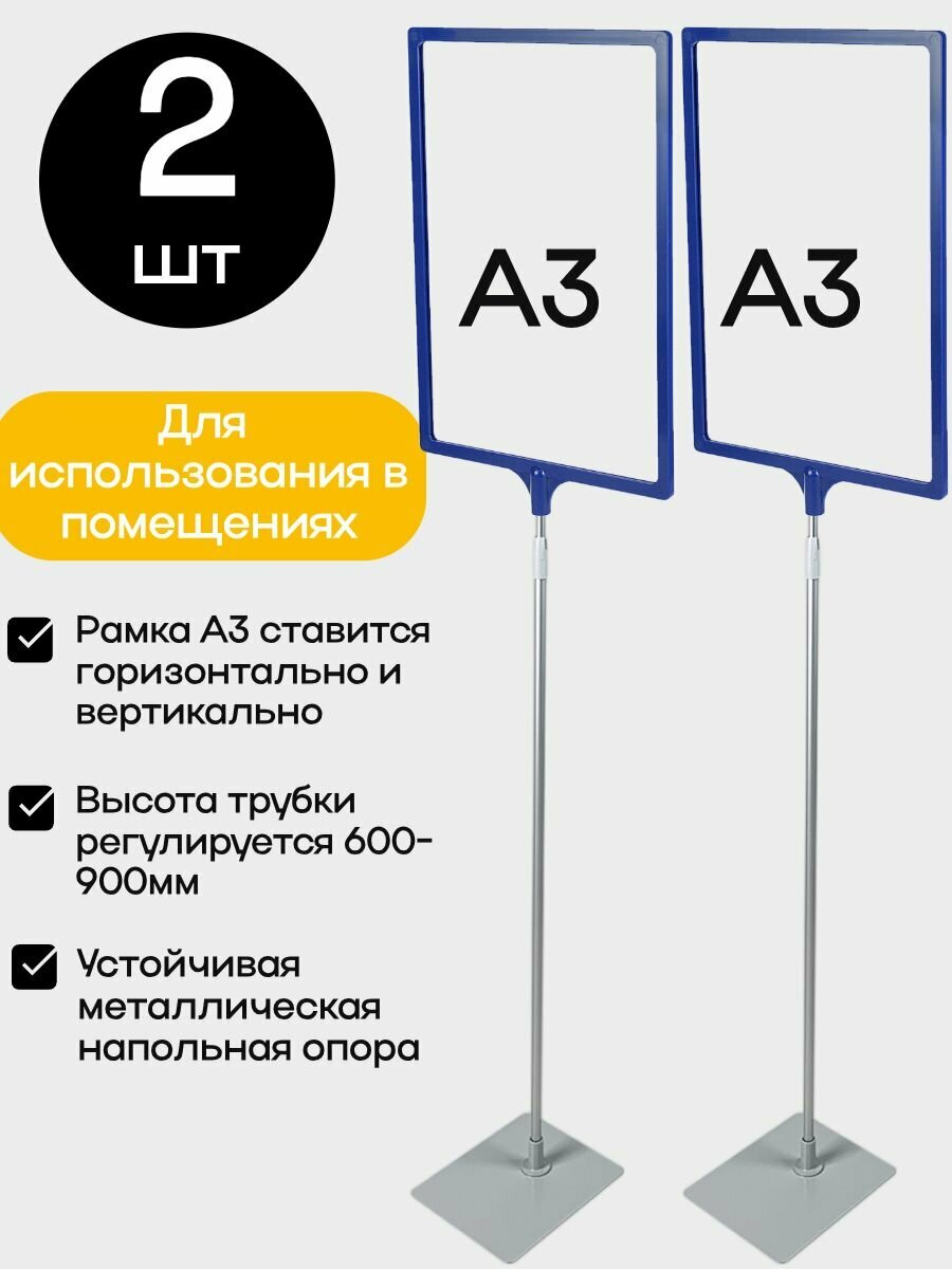 Купить Две синих напольных стойки для информации , рамка А3 с регулируемой по высоте алюминиевой ножкой (600-900мм) на металлической опоре / Информационная рекламная напольная стойка А3 , синяя с доставкой по всей России. Две синих напольных стойки для информации , рамка А3 с регулируемой по высоте алюминиевой ножкой (600-900мм) на металлической опоре / Информационная рекламная напольная стойка А3 , синяя: сравнение цен, характеристики, фото, актуальное наличие и цены.