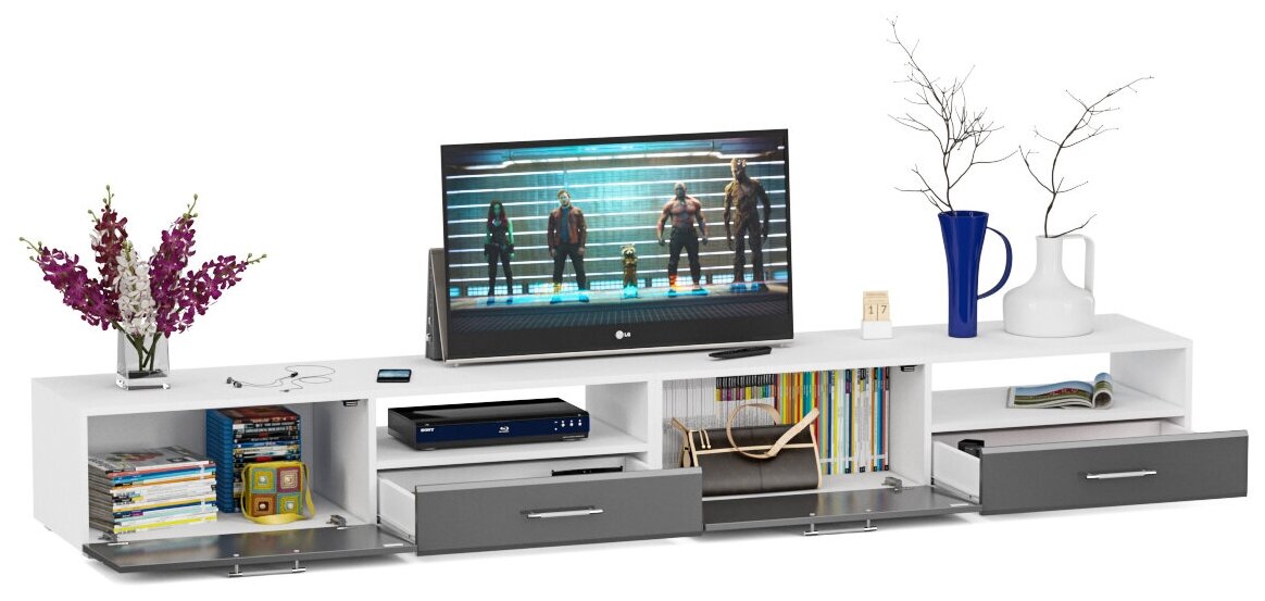 Две ТВ тумбы Ларго 1,4 цвет корпус белый/фасады МДФ графитово-серый глянец, 280х46х35 см, НЕ ун. сб.: сравнение цен, характеристики, фото, актуальное наличие и цены.