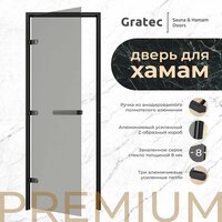 Купить Дверь для хамам и сауны Gratec Estri Black Premium, чёрные короб и фурнитура, серое прозрачное закаленное стекло 8 мм, левое открывание с доставкой по всей России.