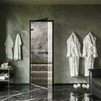 Дверь для хамам и сауны Gratec Estri Black Premium, чёрные короб и фурнитура, серое прозрачное закаленное стекло 8 мм, левое открывание: сравнение цен, характеристики, фото, актуальное наличие и цены.