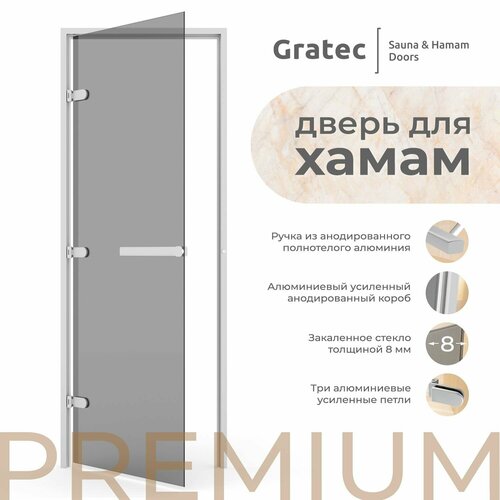 Дверь для хамам и сауны Gratec Estri Premium, серое прозрачное закаленное стекло 8 мм, левое открывание: сравнение цен, характеристики, фото, актуальное наличие и цены.