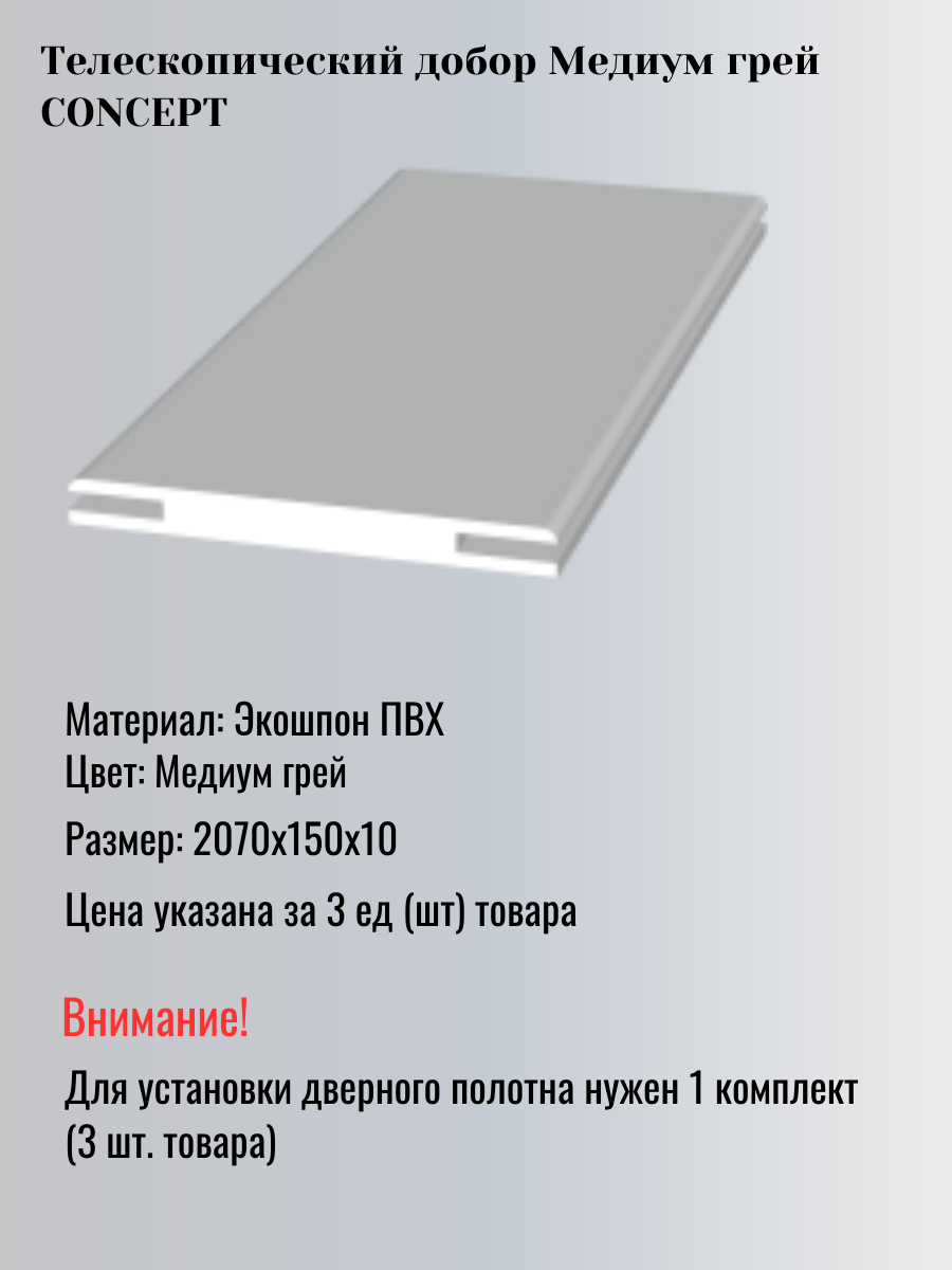Дверной добор 150х10х2070мм, телескопический, Медиум грей CONCEPT -3 шт.: сравнение цен, характеристики, фото, актуальное наличие и цены.