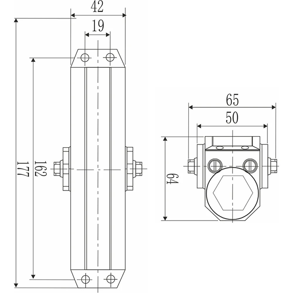 • Тип установки - универсальный для правых и левых дверей • Вес двери - от 40 до 80 кг • Материал корпуса - алюминий • Материал поршня и пружины - закаленная сталь • Габариты корпуса – 177х42х64мм • Температурный режим работы - от -35 до +60 градусов • Скорость закрывания - регулируется в диапазоне 180 – 20 клапаном 1 • Скорость дохлопа - регулируется в диапазоне 20 – 0 клапаном 2 • Рабочий ресурс - 300 000 – 500 000 циклов