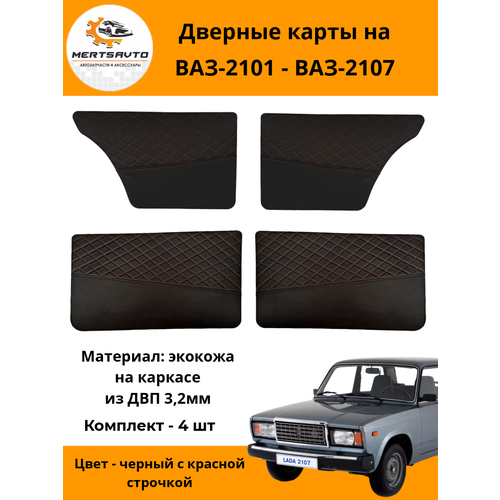 Дверные карты «классика» на ВАЗ-2101, 2102, 2103, 2104, 2105, 2106, 2107- черный с красной строчкой «ромб»: сравнение цен, характеристики, фото, актуальное наличие и цены.