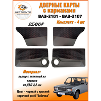 Купить Дверные карты Mertsavto на ВАЗ2101-2107 с подиумом, черный с красной строчкой «ромб-бабочка» велюр на каркасе из ДВП с доставкой по всей России.