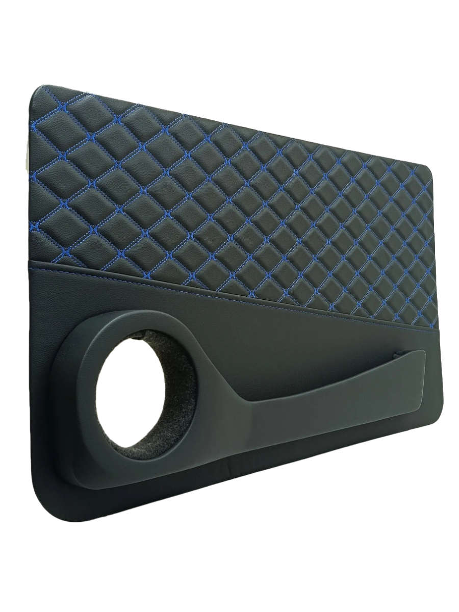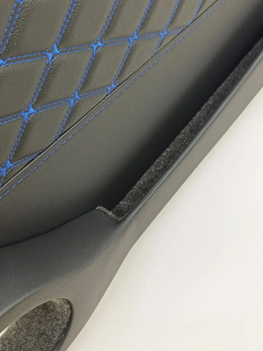 Купить Дверные карты «классика» на ВАЗ-2101-2107 с подиумом, черный с синей двойной строчкой «ромб-бабочка» с доставкой по всей России.