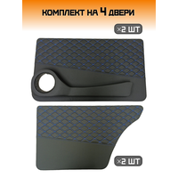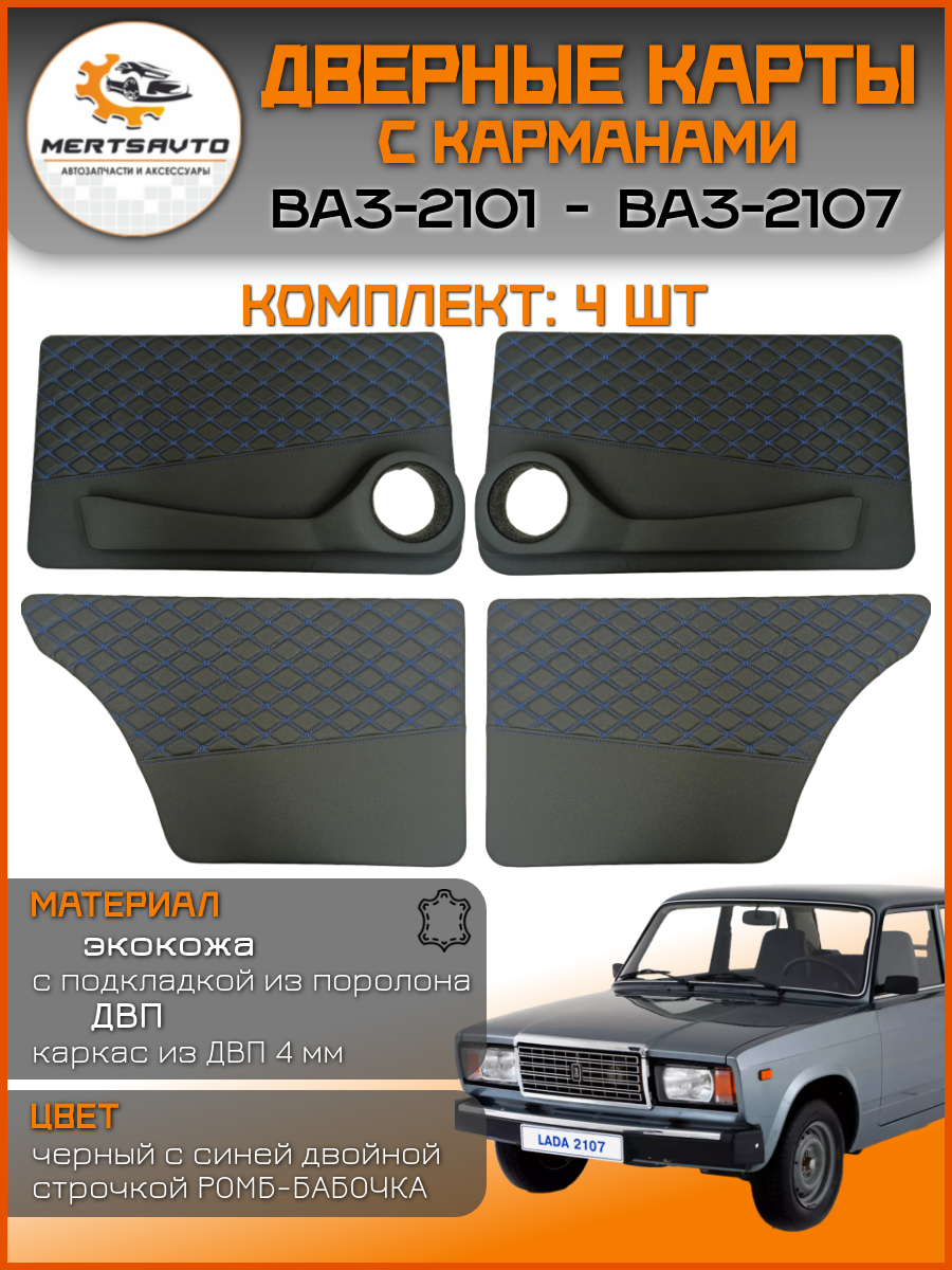 Дверные карты «классика» на ВАЗ-2101-2107 с подиумом, черный с синей двойной строчкой «ромб-бабочка»: сравнение цен, характеристики, фото, актуальное наличие и цены.