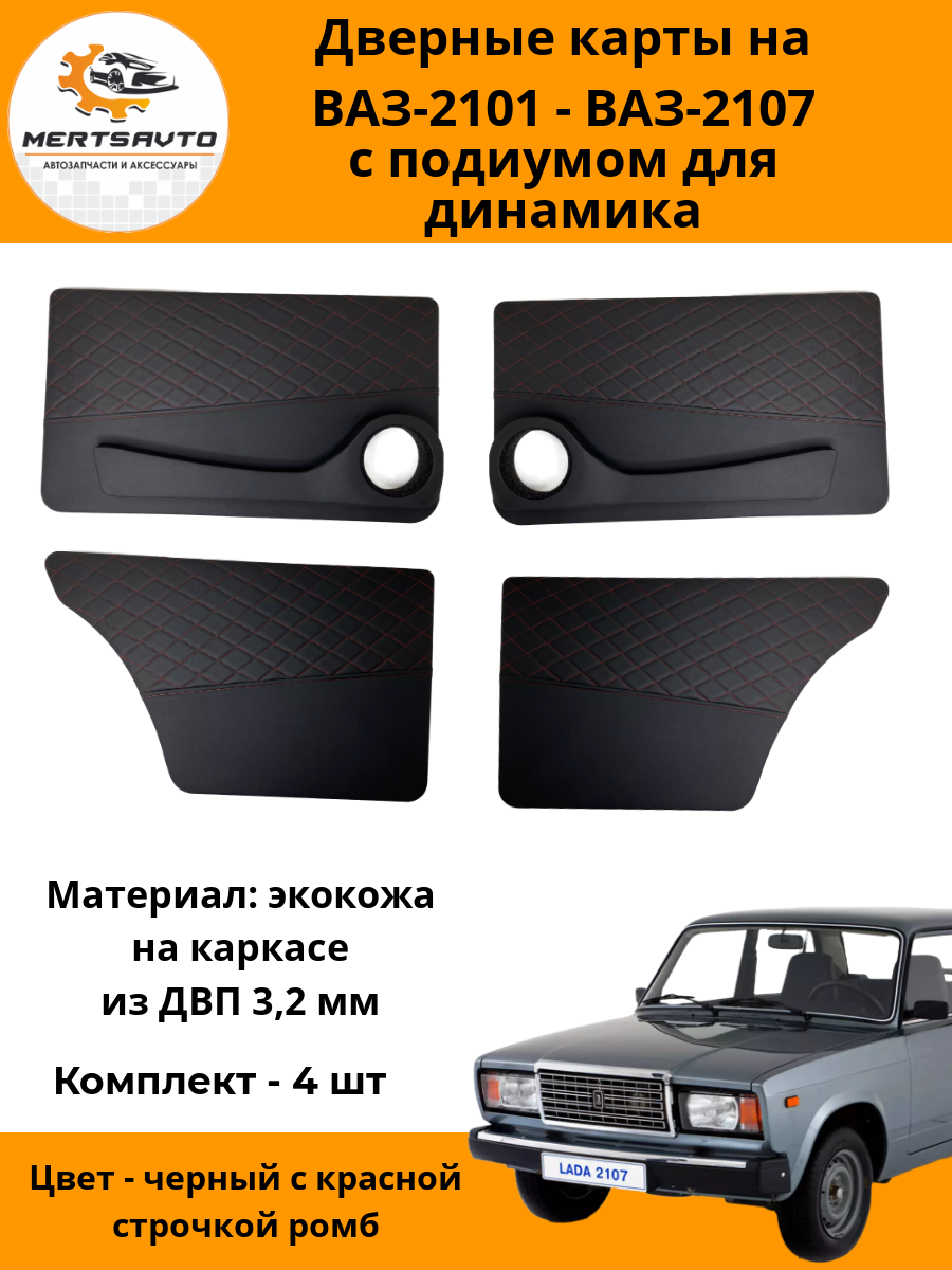 Дверные карты «классика» с подиумом под динамики на ВАЗ-2101- 2107- черный с красной строчкой «ромб»: сравнение цен, характеристики, фото, актуальное наличие и цены.