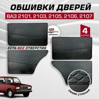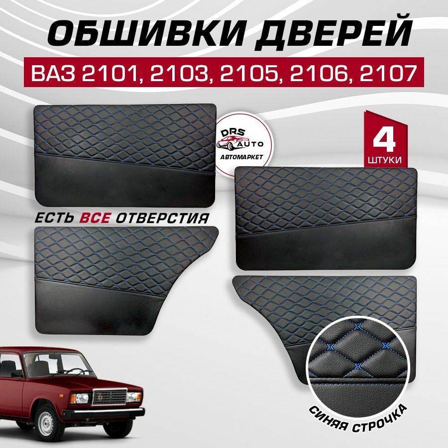 Купить Дверные карты ваз 2101 2103 2105 2106 2107 экокожа, 4 шт обшивка дверей с синей строчкой бабочка с доставкой по всей России.