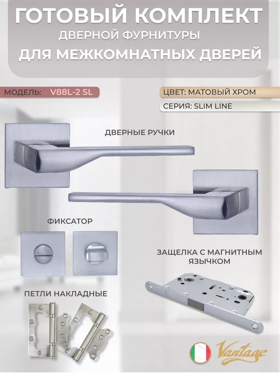 Купить Дверные ручки V88L-2 SL с фиксатором, защелкой и петлями с доставкой по всей России.