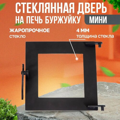 Версия дверцы со стеклянной вставкой, которая позволяет следить за нагревом и любоваться пламенем.