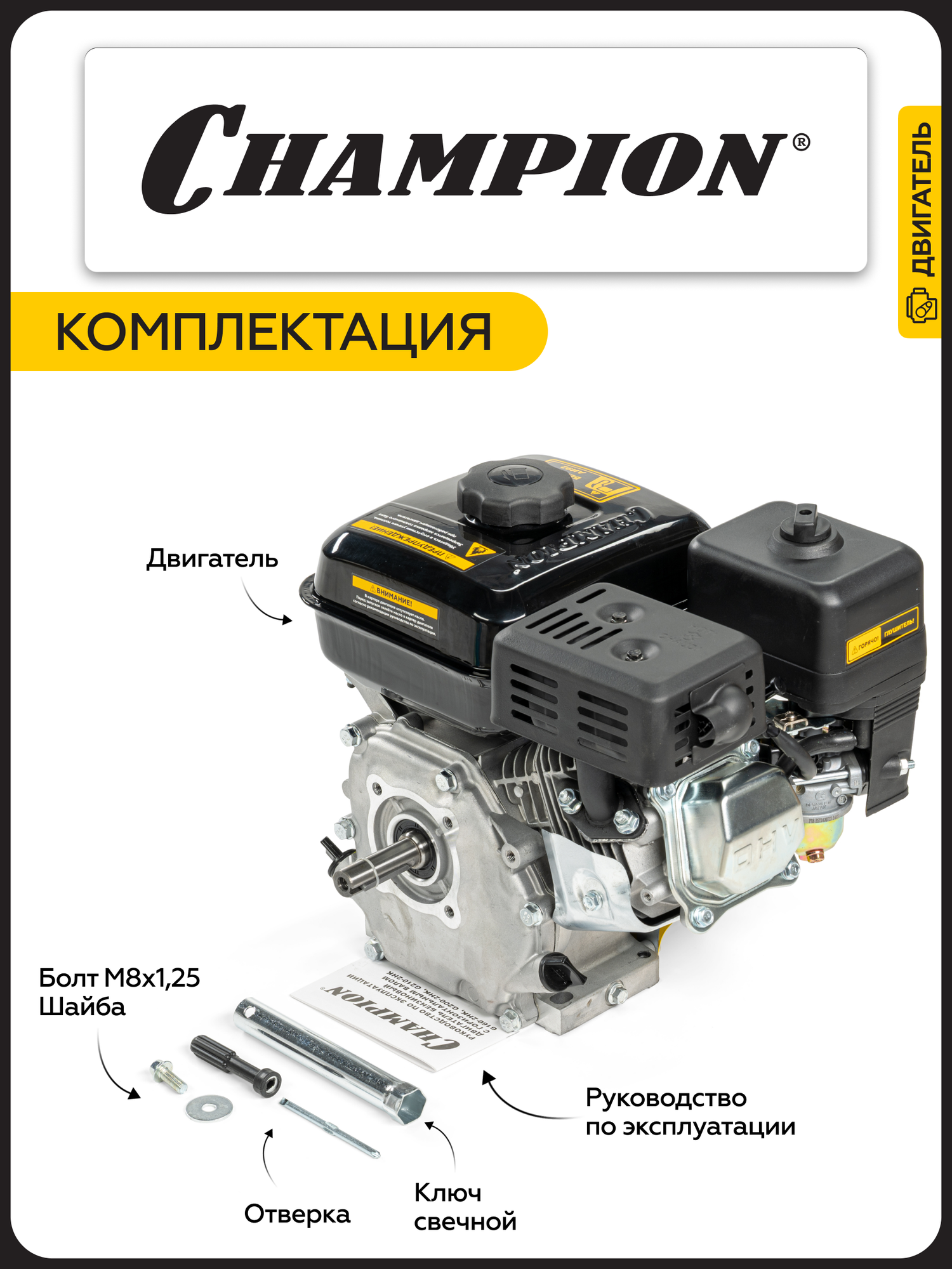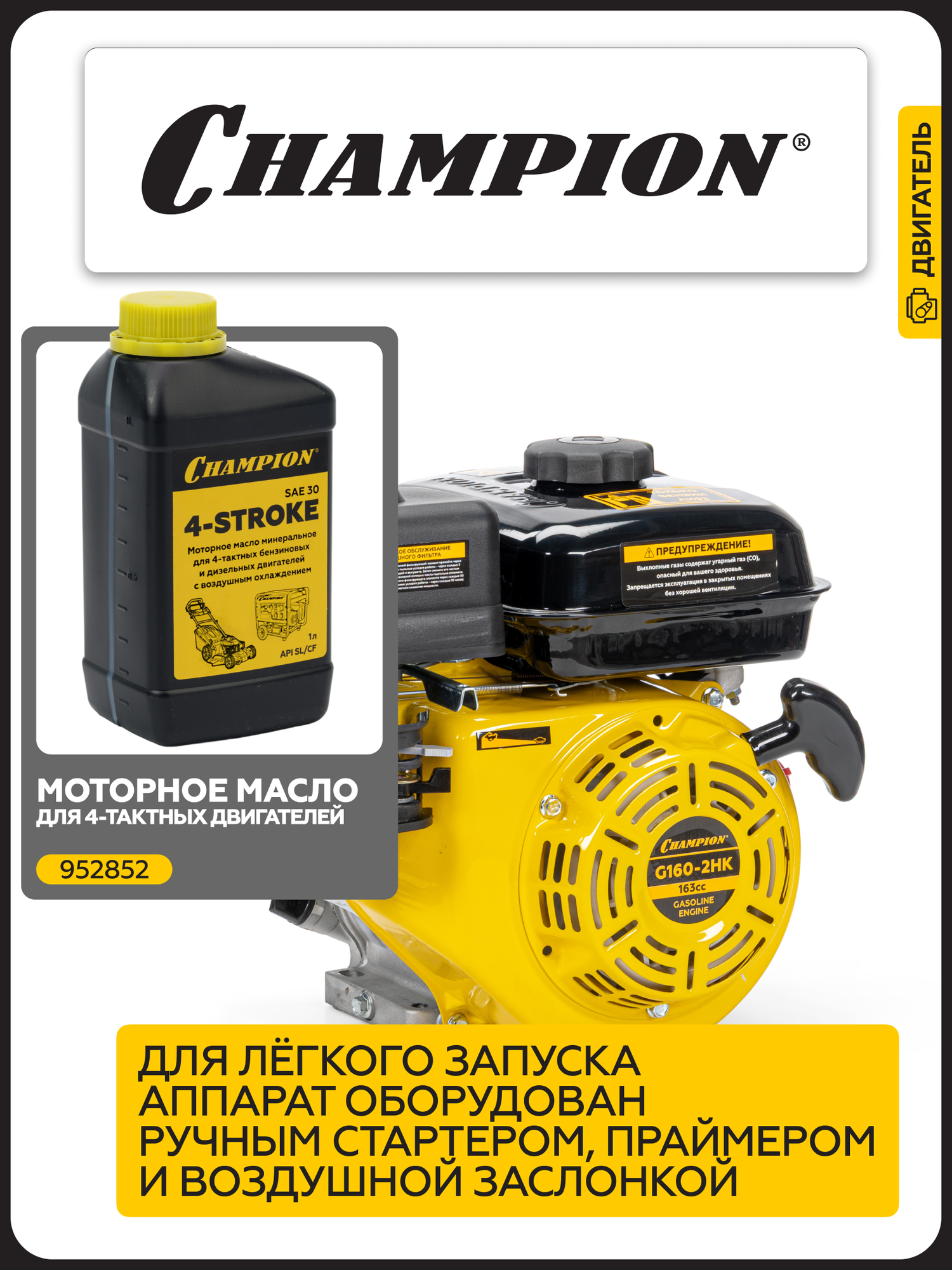 Двигатель бензиновый четырехтактный для мотоблока, газонокосилки CHAMPION G160-2HK, с горизонтальным валом: сравнение цен, характеристики, фото, актуальное наличие и цены.
