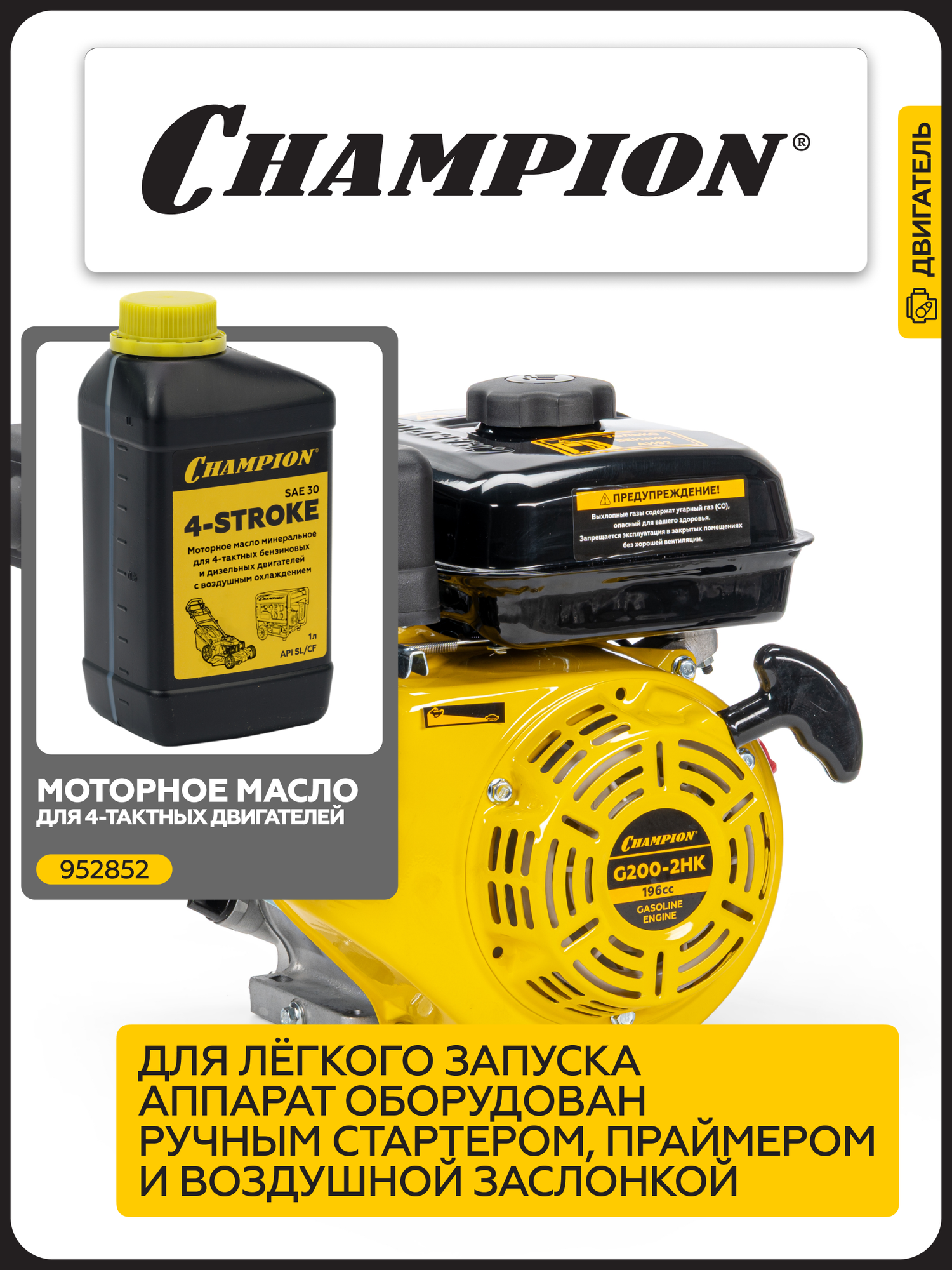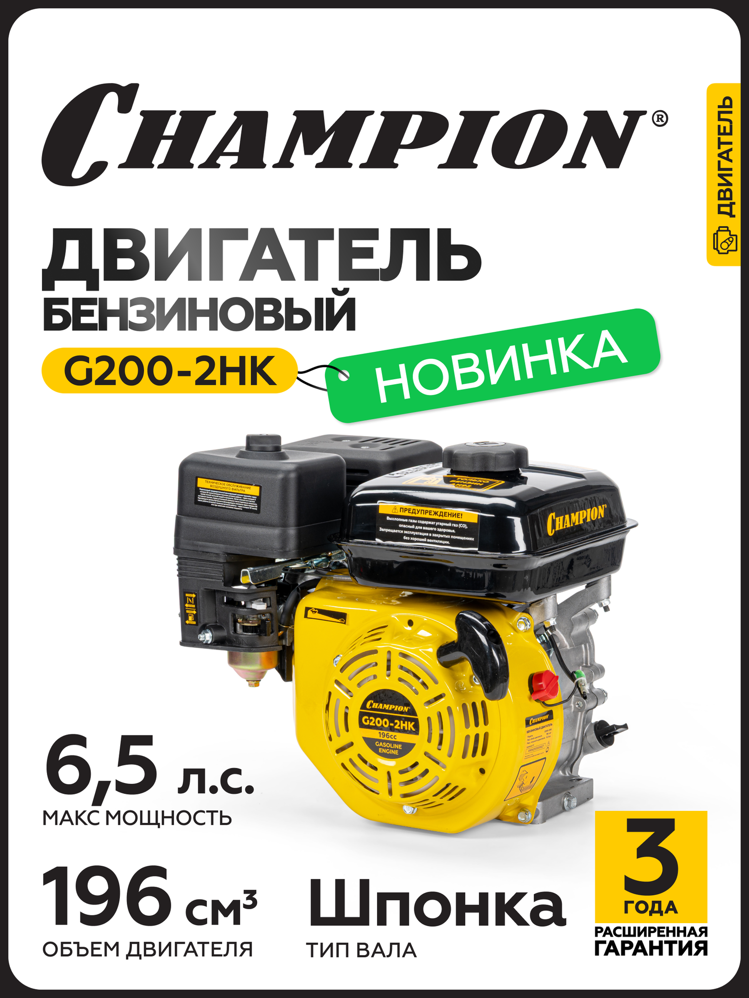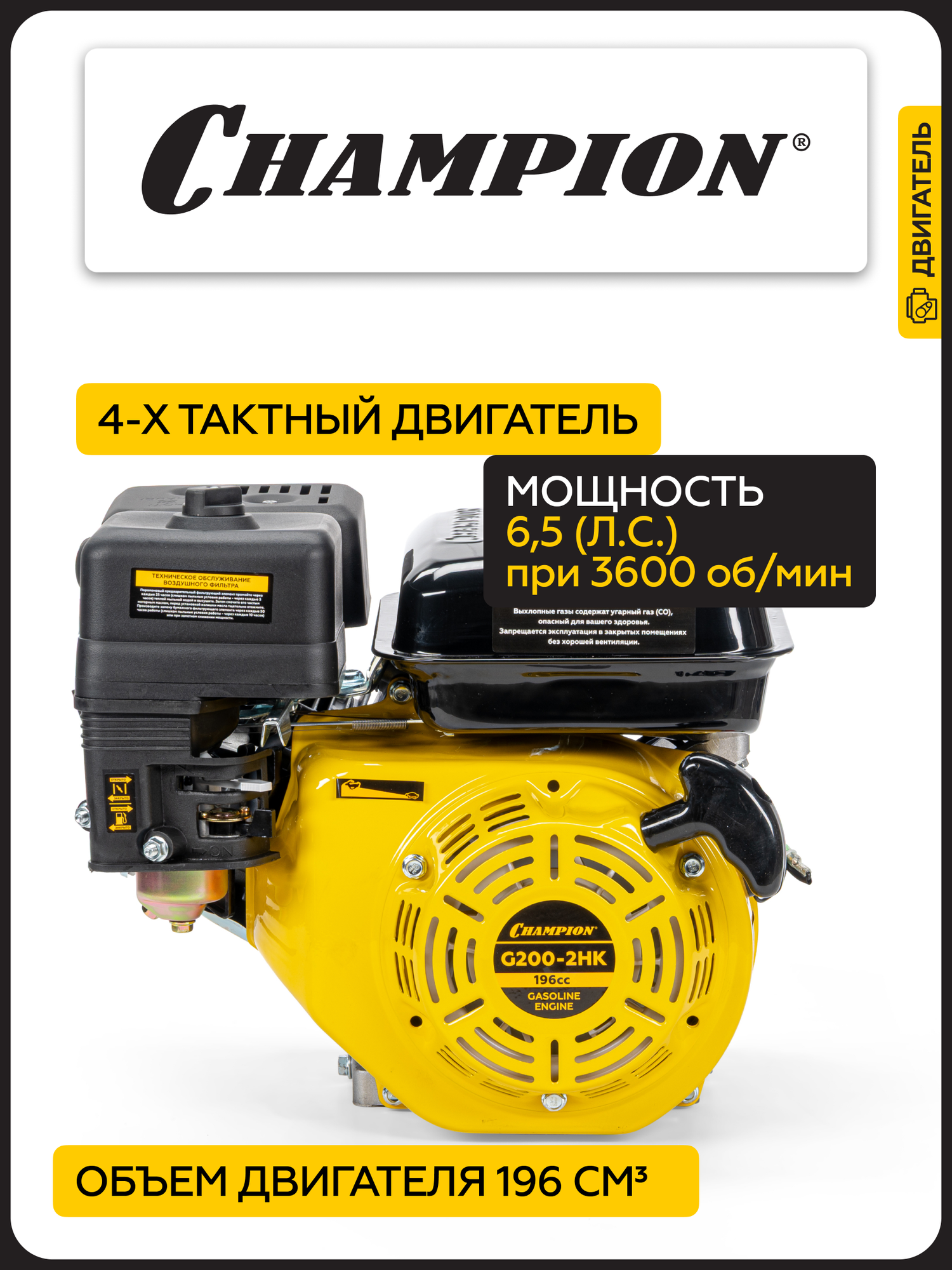 Двигатель бензиновый четырехтактный для мотоблока, газонокосилки CHAMPION G200-2HK, с горизонтальным валом: сравнение цен, характеристики, фото, актуальное наличие и цены.