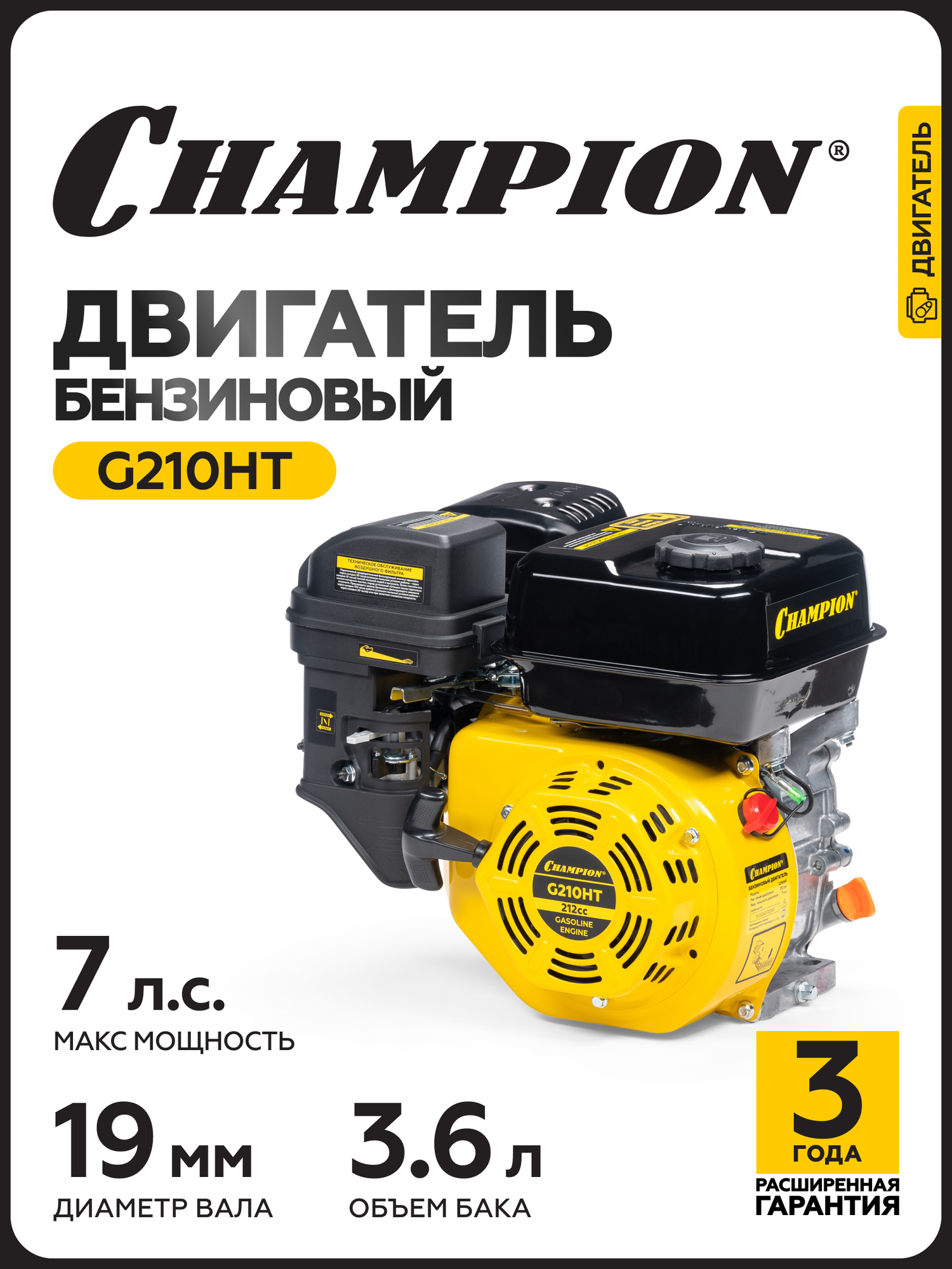 Двигатель бензиновый четырехтактный для мотоблока, газонокосилки CHAMPION G210HT, 5,1 кВт, 212 см3, ручной запуск: сравнение цен, характеристики, фото, актуальное наличие и цены.