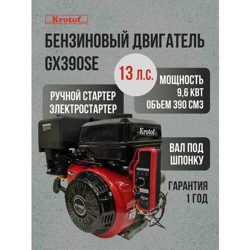 Двигатель Krotof GX390SE, 13 л. с, электростартер, вал со шлицами, бензиновый, 390 куб. см.
