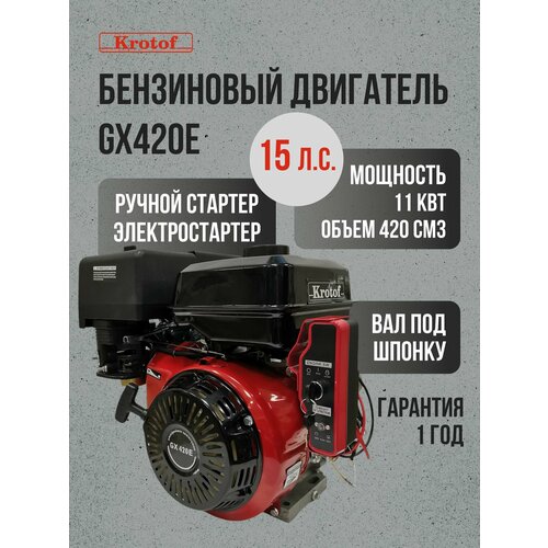 Двигатель Krotof GX420E, 15 л. с, электростартер, вал со шпонкой, бензиновый, 420 куб. см.