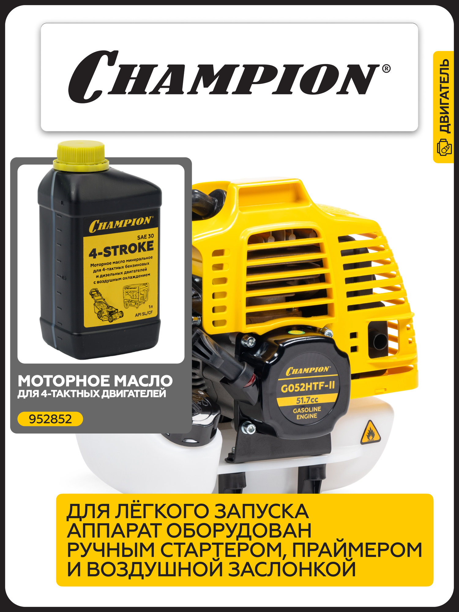 Двигатель бензиновый двухтактный для триммеров, лодочных моторов CHAMPION G052HTF-II, 1,4 кВт, 51,7 см3, ручной запуск: сравнение цен, характеристики, фото, актуальное наличие и цены.
