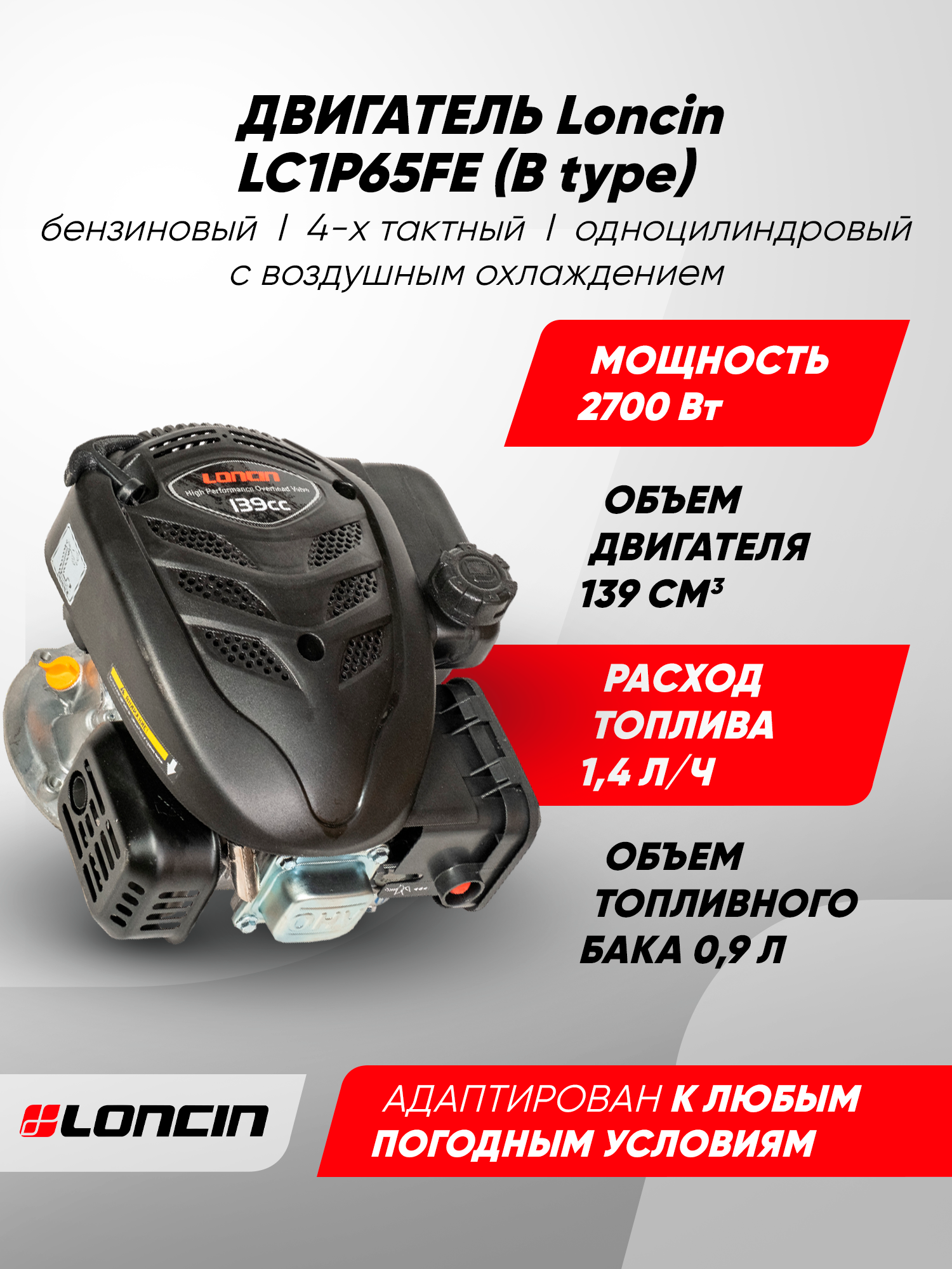 Двигатель бензиновый Loncin LC1P65FE (B type) D22.2 (4л. с, 139куб. см, вал 22.2мм, ручной старт): сравнение цен, характеристики, фото, актуальное наличие и цены.