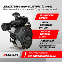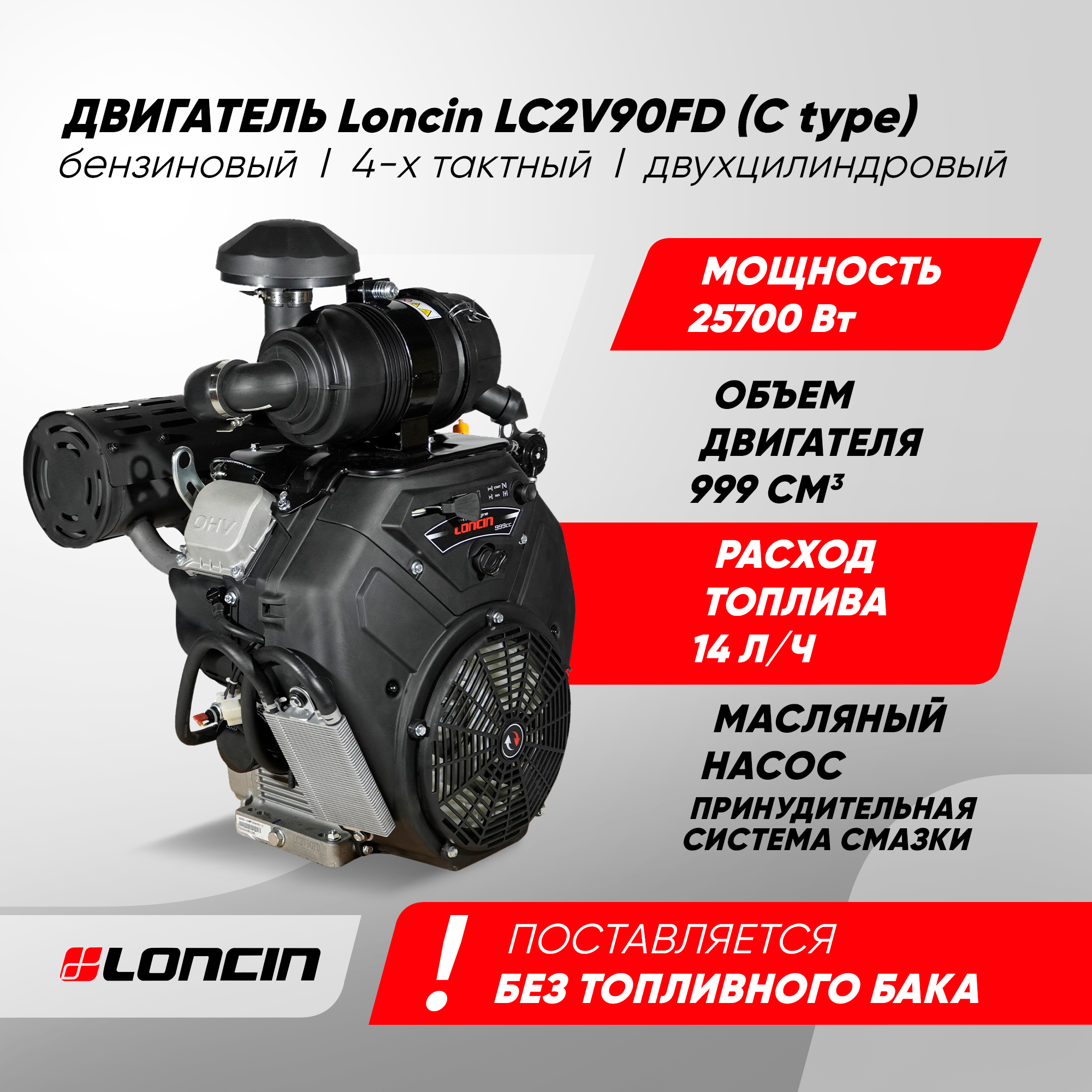 Двигатель бензиновый Loncin LC2V90FD (C type) (35лс, 999куб. см, V-образн, вал 36.5мм, электрический старт, катушка 20А, цилиндрический в/фильтр): сравнение цен, характеристики, фото, актуальное наличие и цены.