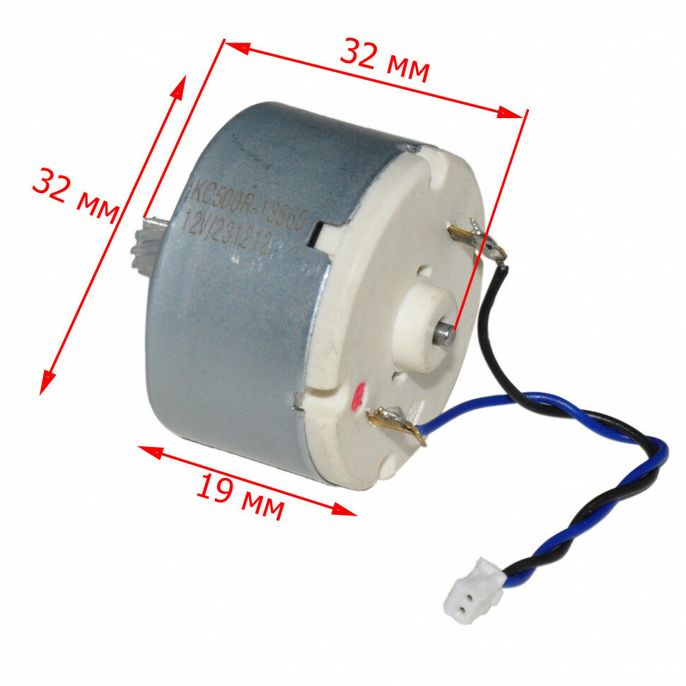 Двигатель боковой щетки (KC500R-13560) робот-пылесоса HAIER HSR CARE, арт. HSR CARE-DBS Маркировка на корпусе мотора: KC500R-13560 12V Характеристики: Тип: запчасть Тип запчасти: моторчик боковой щётки Назначение: для робота-пылесоса Материал: металл Общая длина по валу: 32 мм Диаметр корпуса: 32 мм Разъём для подключения: 2 пина
