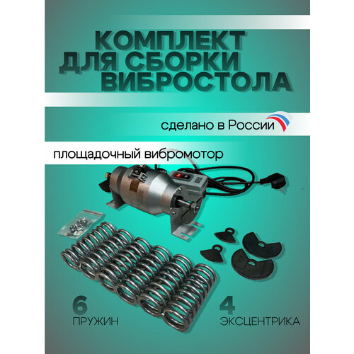 Двигатель для вибростола (набор для самостоятельной сбоки). Подойдёт для столов площадью до 1 м2 и общей нагрузкой до 200 кг. Двигатель 300 ватт, 3000 оборотов. 2 вала. В комплекте 6 эксцентриков с разным вырезом для того, чтобы вы могли подобрать идеальную для себя вибрацию. Эксцентрики можно комбинировать друг с другом. Пружины с толщиной прута 5 мм, выдерживают нагрузку до 200 кг.