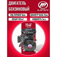Купить Двигатель LIFAN 154F 3 л. с. 4-х тактный, бензин (2,2 кВт, вал 15 мм) с доставкой по всей России. Двигатель LIFAN 154F 3 л. с. 4-х тактный, бензин (2,2 кВт, вал 15 мм): сравнение цен, характеристики, фото, актуальное наличие и цены.