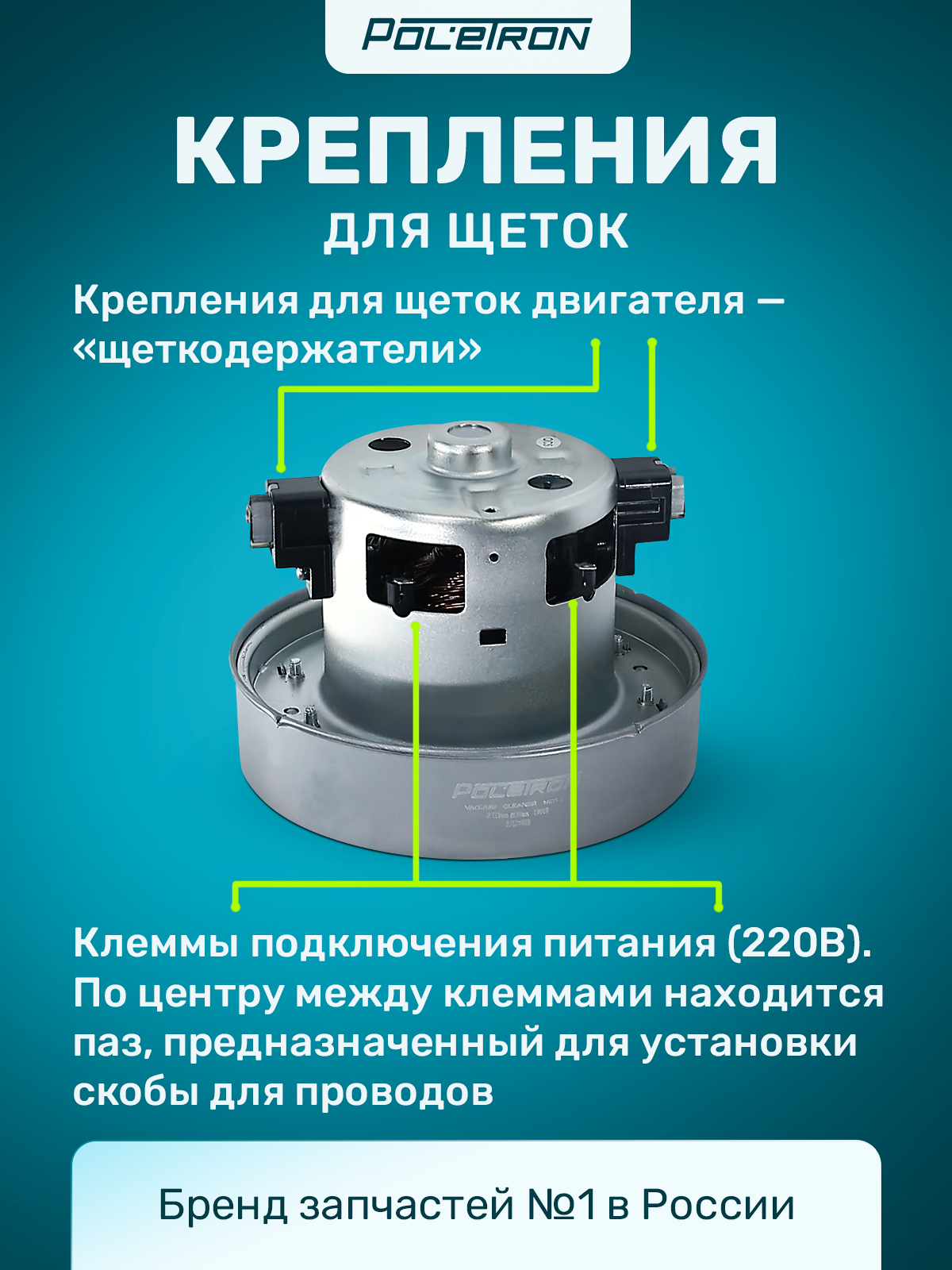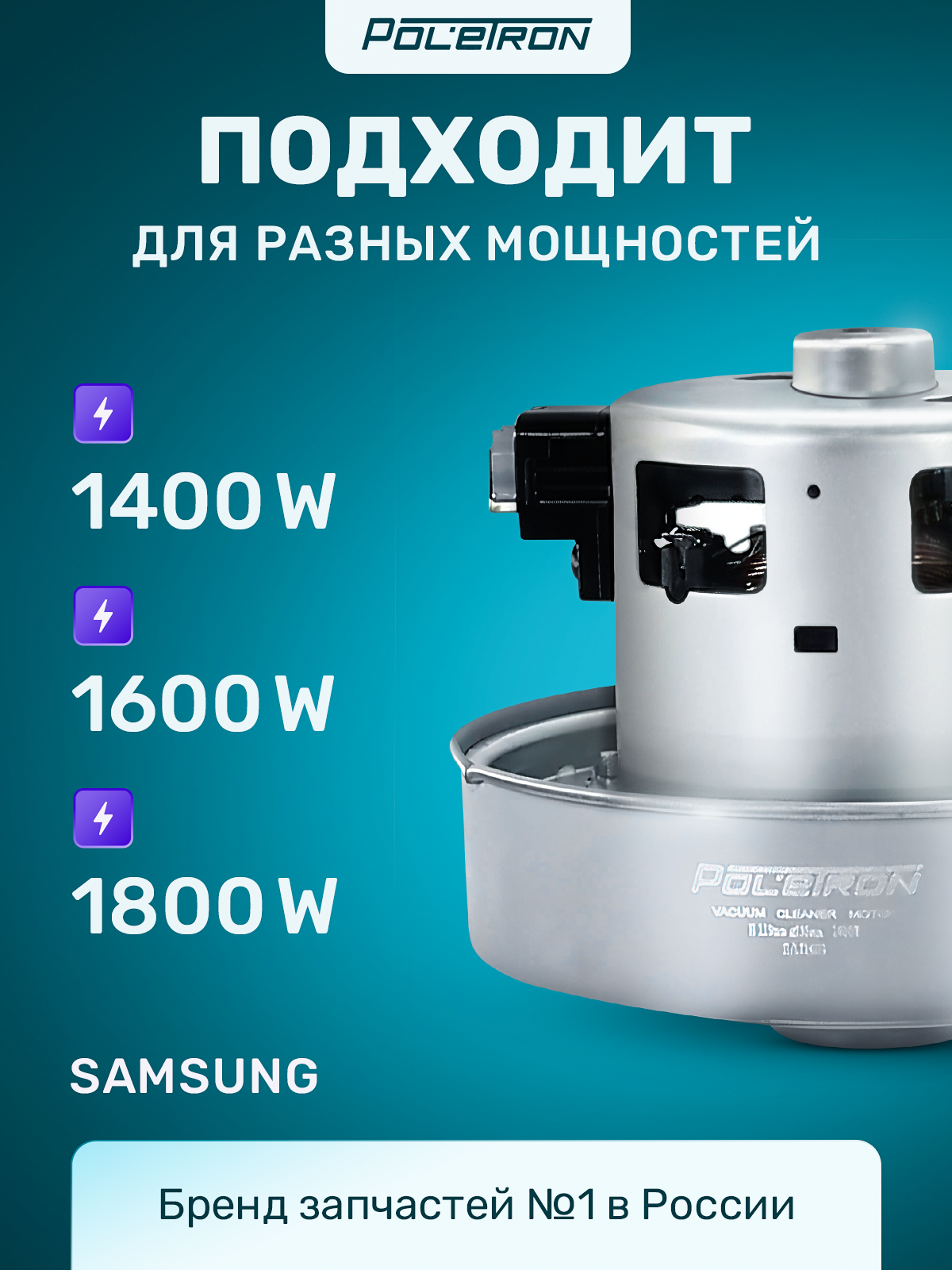 Двигатель для пылесоса Samsung 1600W - универсальный мотор для пылесосов. Можно установить вместо 1800Вт, посадочные размеры: диаметр 135 мм, высота 112 мм. Замена запчасти для пылесоса не потребует от вас больших усилий, его компактный размер и форма помогут Вам легко и самостоятельно его поставить. Запчасть совместима со многими моделями. Мотор является универсальным. Если мотор сильно греется: так как мотор новый, на заводе его проверяют на заводской брак; первые 30 минут работы щетки притираются к коллектору и статор может сильно греться. При замене двигателя рекомендуем поменять воздушные фильтры для того, чтобы мотор выдавал полную мощность.