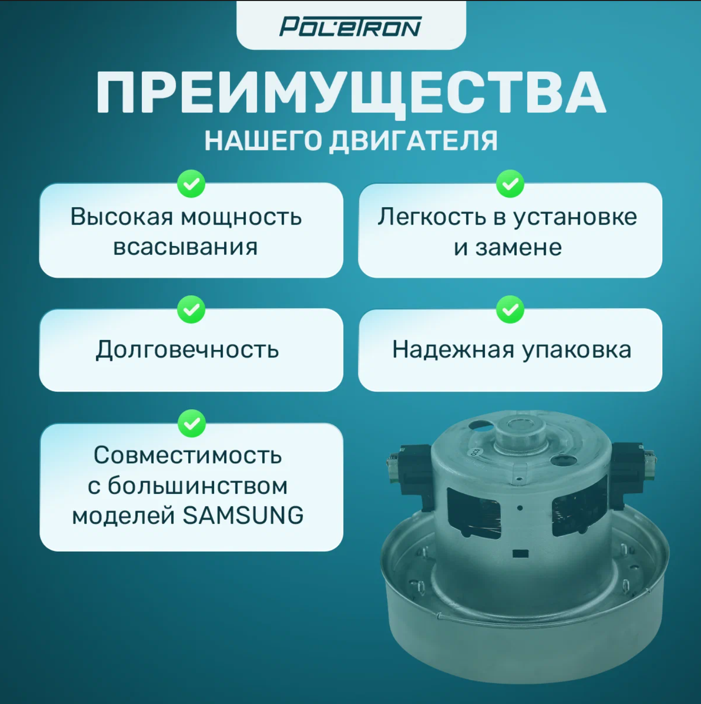 Мотор для пылесосов LG Poletron 2000W совместим с такими марками пылесосов, как LG и Poletron.
