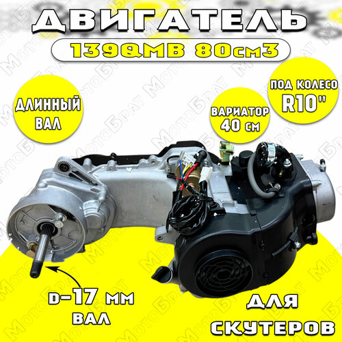 Купить Двигатель в сборе на скутер 139QMB 80см3 (R10″, длинная ось) с доставкой по всей России. Двигатель в сборе на скутер 139QMB 80см3 (R10″, длинная ось): сравнение цен, характеристики, фото, актуальное наличие и цены.