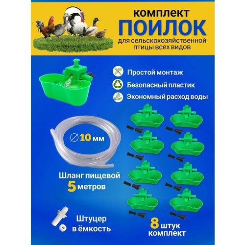 Двойная чашечная поилка для куропаток кур перепелов от бренда Gardening - надежный и качественный аксессуар, который обеспечивает автоматическое поение птиц. В комплекте 8 чашечных поилок, шланг пищевой и штуцер для удобной установки. Изготовлен из прочного пластика высокого качества. Регулируемый уровень воды и легкая установка на клетку или вольер. Подходит для различных видов птиц и идеально подходит для использования на фермах и в домашних условиях. Удобный в использовании и функциональный набор для организации автоматического поения животных.
