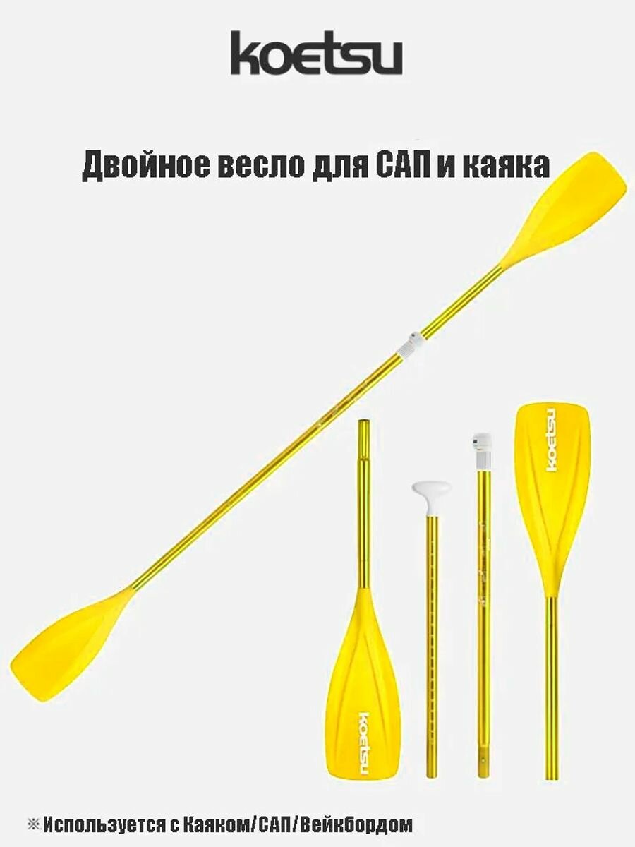 Купить Двойное весло для SUP доски и каяка, байдарки Koetsu желтое с доставкой по всей России.