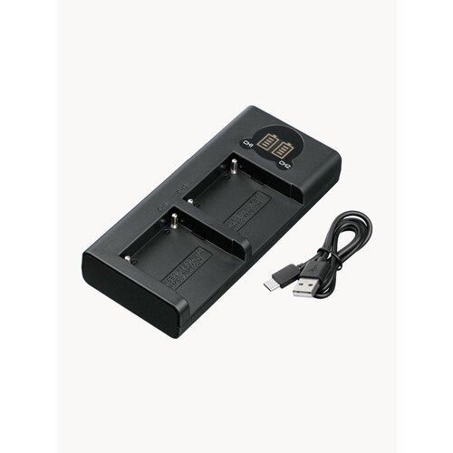 Зарядное устройство оснащено двумя выходными разъемами USB Type-C, что позволяет одновременно заряжать два аккумулятора. Это особенно удобно, если вы используете несколько камер или аксессуаров, требующих питания.