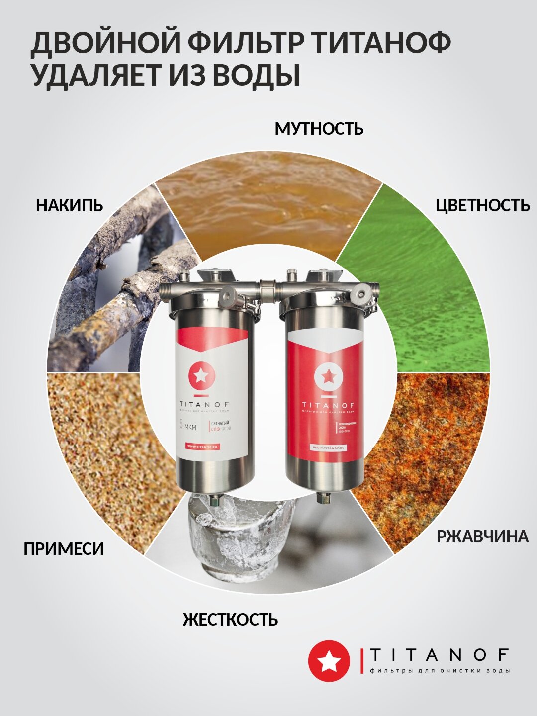 Двойной фильтр для воды титаноф СК 3000. Грубая, механическая очистка, умягчение и удаление накипи BIG BLUE 10, присоединение 1 дюйм: сравнение цен, характеристики, фото, актуальное наличие и цены.