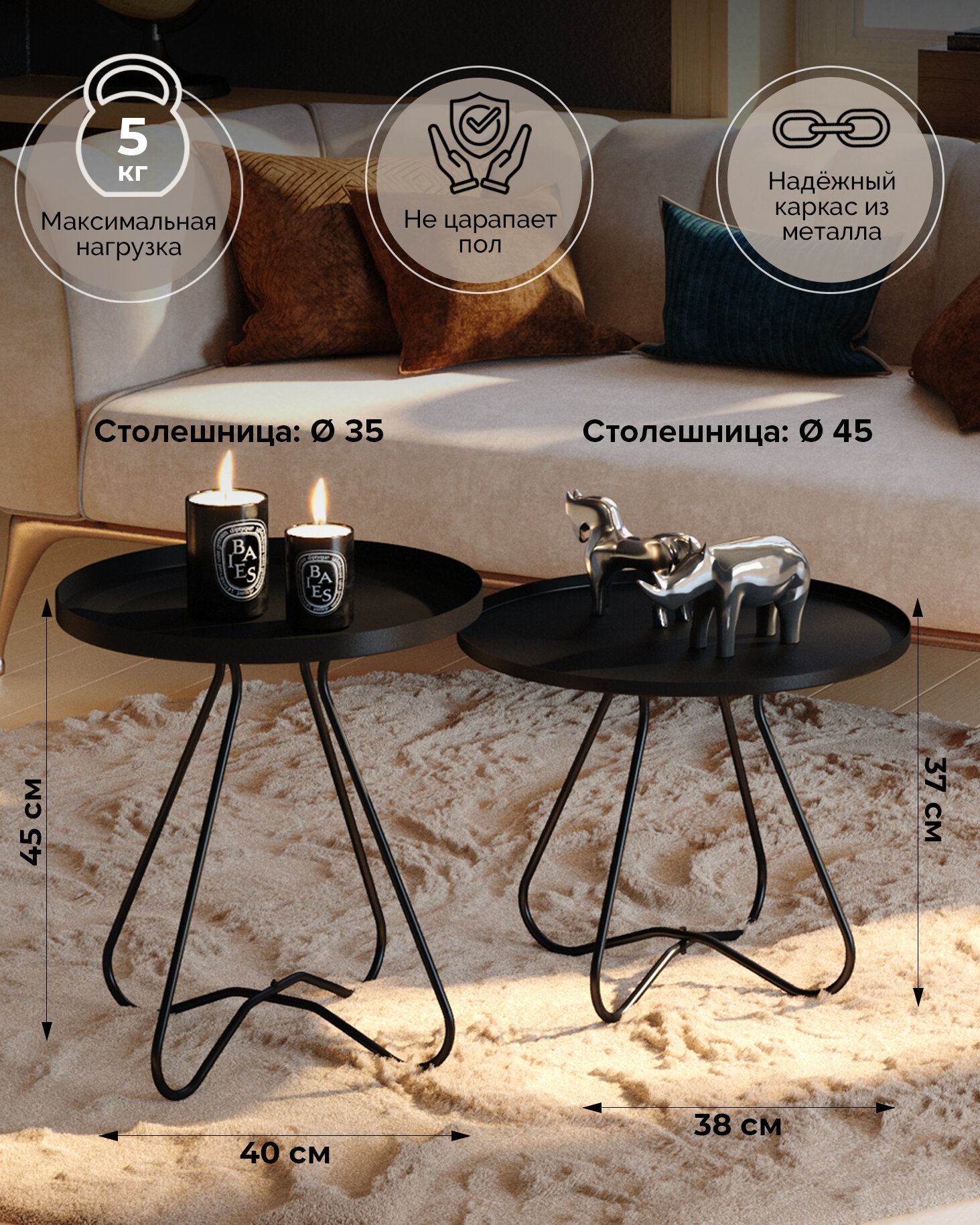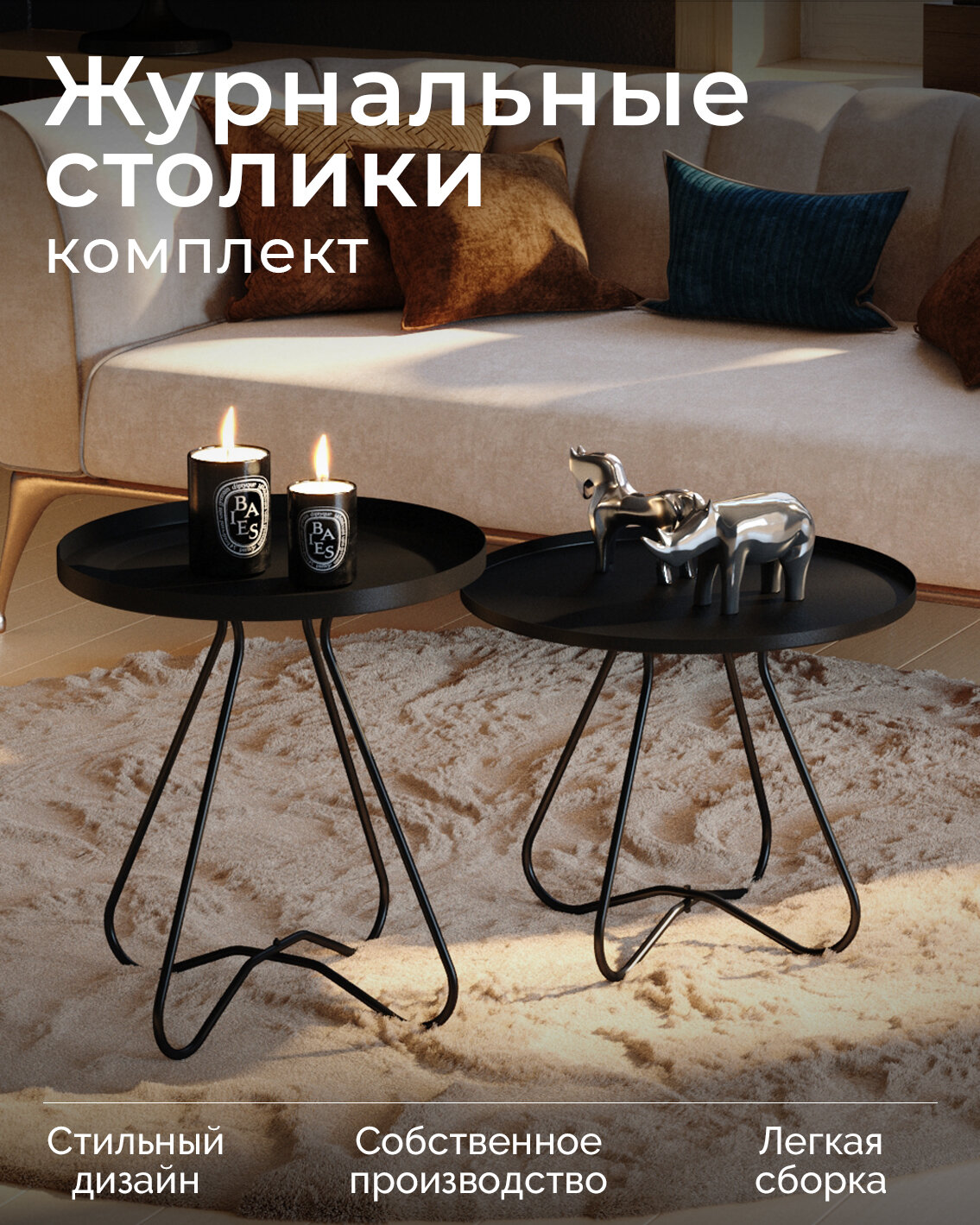 Комплект кофейных столиков - это стильное и функциональное решение для дома или офиса. Два одинаковых столика разных размеров и высоты можно соединить в одну композицию или разместить в разных помещениях. Лаконичный дизайн позволяет использовать этот комплект независимо от стиля вашего интерьера.
