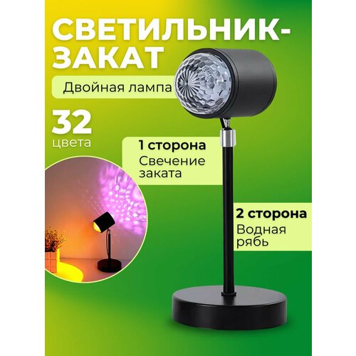Двойной светильник с эффектом заката - это идеальный декор который сразу же добавит уюта, ведь только одной такой лампой можно осветить два помещения сразу. Это идеальный студийный свет для фотосессии, очень яркий свет для видео и фото. Имеет много специальных функций. Разнообразие цветов на выбор, которые настолько яркие что вам покажется как будто вы смотрите на настоящий закат и рассвет. Чем дальше расстояние, тем больше проекция. Светильник с одной стороны с эффектом «водная рябь» 16 цветов, с другой «эффект заката» 16 цветов, получается 32 цвета. Вы можете выбрать режим: мигающий, статичный, плавный переход между цветами. Лампа закатная с помощью двойного переключателя может включать одновременно две лампы или по отдельности.