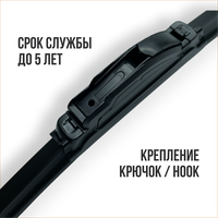 Уникальная гибридная конструкция щетки обеспечивает долговечность и максимальную тихую работу. Щетка состоит из каркасного стеклоочистителя и специального аэродинамичного кожуха, который полностью закрывает стеклоочиститель от внешнего воздействия. Это гарантирует отличное прилегание к стеклу и безупречное качество очистки.