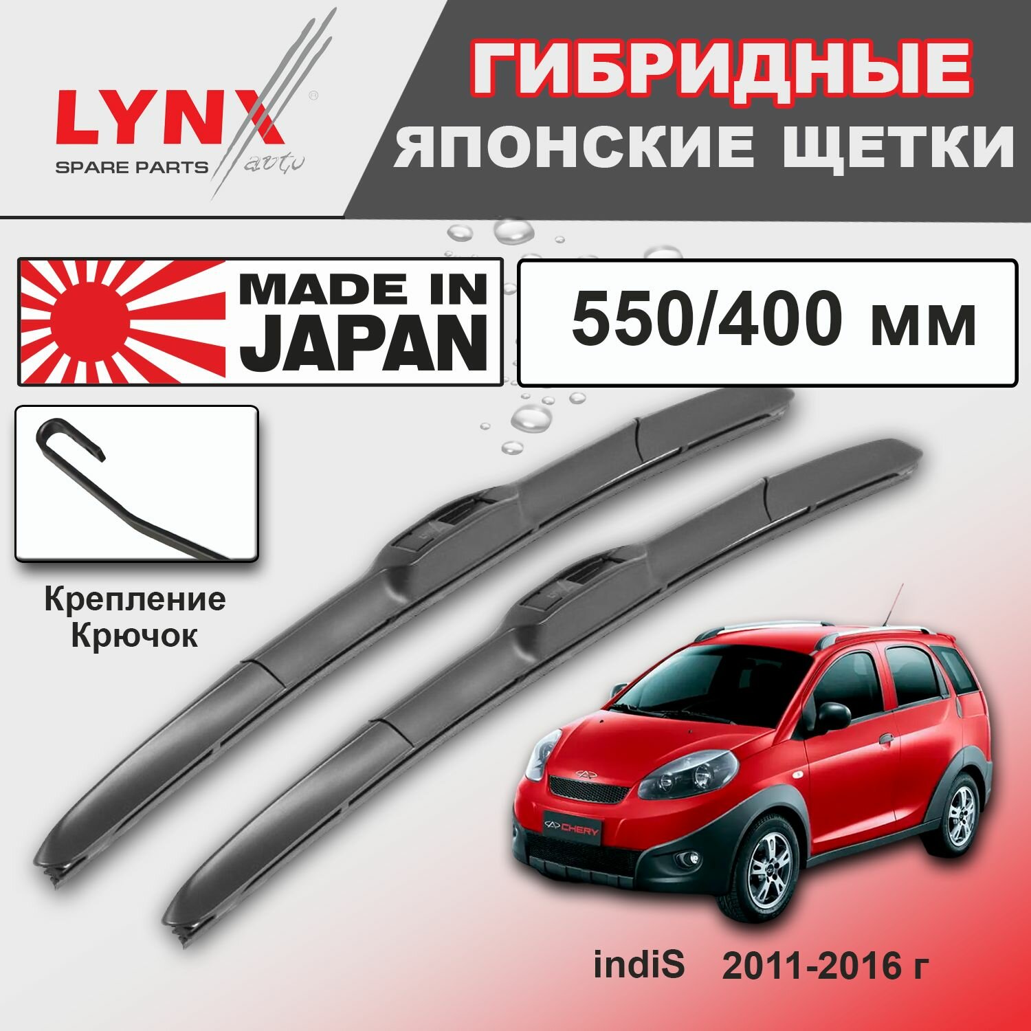Дворники Chery indiS S18D / Чери Индис С18Д 2011 2012 2013 2014 2015 2016 Щетки стеклоочистителя гибридные ОЕМ для автомобиля LYNXauto к-т 2 шт, 550мм-400мм