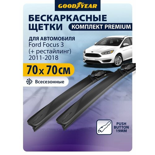 Купить Дворники Ford Focus 3 пок. 2011-2018 г. (Форд Фокус 3, рестайлинг), Щетки стеклоочистителя бескаркасные Goodyear 700 700 с доставкой по всей России. Дворники Ford Focus 3 пок. 2011-2018 г. (Форд Фокус 3, рестайлинг), Щетки стеклоочистителя бескаркасные Goodyear 700 700: сравнение цен, характеристики, фото, актуальное наличие и цены.