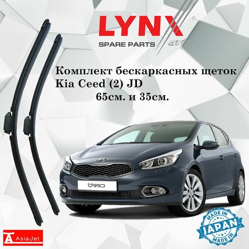 Купить Дворники Kia Ceed (2) JD / Киа Сид хэтчбек 2012 2013 2014 2015 2016 Щетки стеклоочистителя бескаркасные автомобильные LYNXauto к-т 2шт, 650мм-350мм с доставкой по всей России.