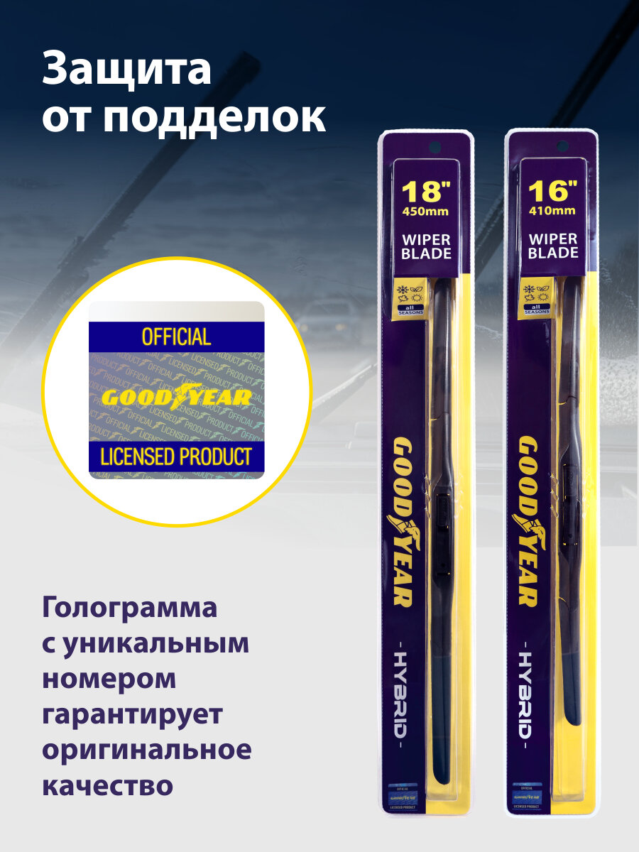 Купить Дворники Suzuki Jimny 3 JB23, JB33, JB43, JB53, SN (Сузуки Джимни 3) 1998-2018, Щетки стеклоочистителя гибридные Goodyear 45+41 см с доставкой по всей России.
