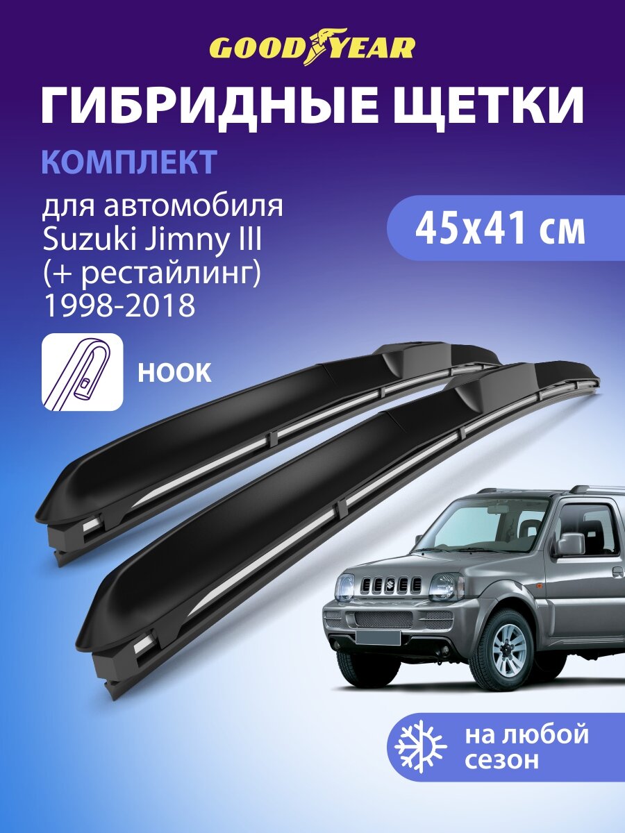 Дворники Suzuki Jimny 3 JB23, JB33, JB43, JB53, SN (Сузуки Джимни 3) 1998-2018, Щетки стеклоочистителя гибридные Goodyear 45+41 см: сравнение цен, характеристики, фото, актуальное наличие и цены.