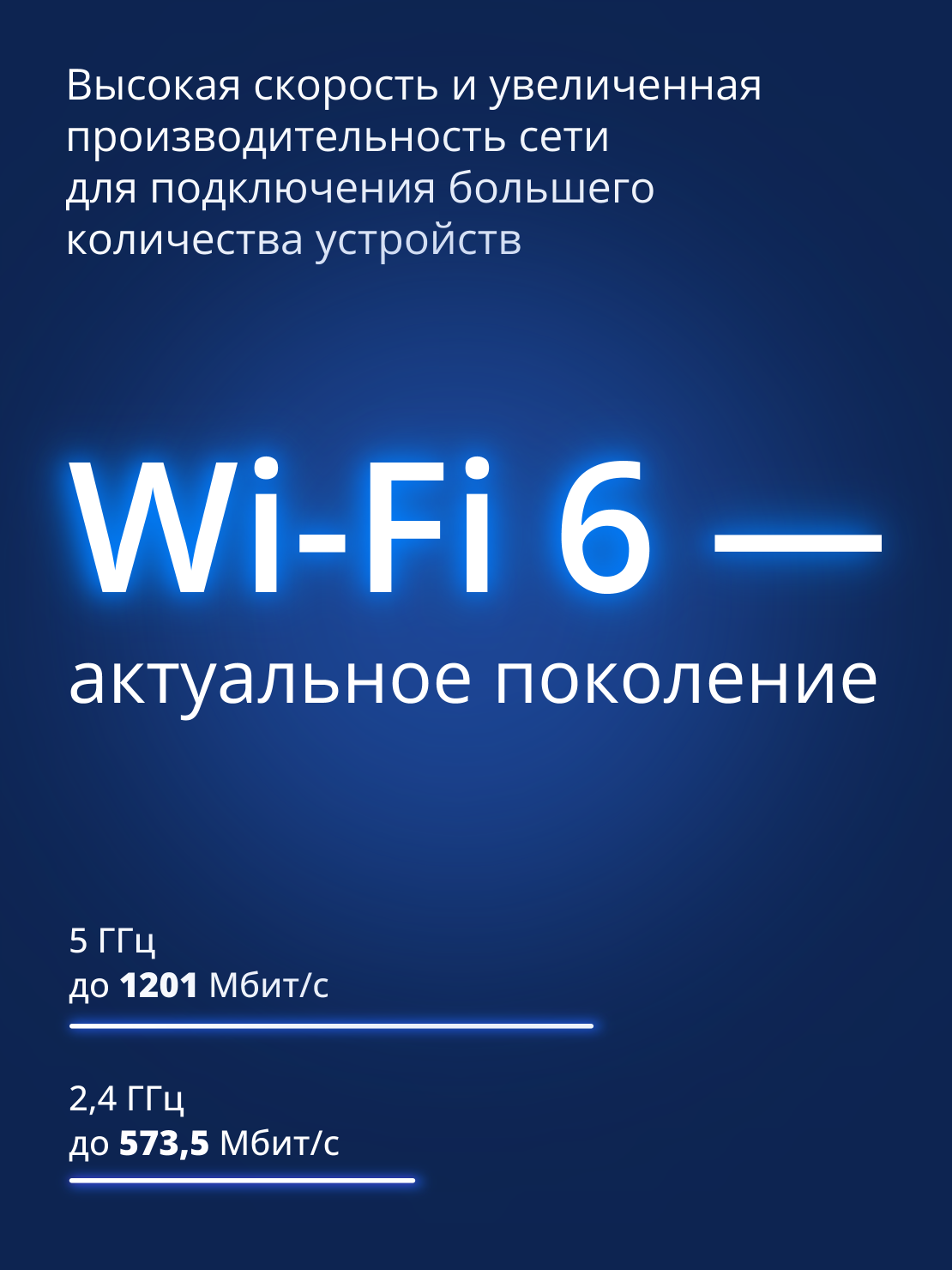 RG-1520G-Wax – производительный домашний роутер. Благодаря поддержке стандарта Wi-Fi 6 и технологий повышения производительности – модуляции 1024QAM и MU-MIMO – роутер обеспечивает высокую скорость, минимальные задержки и стабильное соединение для каждого гаджета. Поддерживает суммарную скорость передачи данных «по воздуху» более 1,7 Гбит/c. Работает сразу в двух диапазонах для эффективного распределения нагрузки внутри сети. Например, к сети 5 ГГц можно подключить требовательные к скорости устройства – игровую приставку или смарт-телевизор, а к сети 2,4 ГГц – устройства умного дома. Порт WAN 2,5 Гбит/с поможет перейти на более скоростной интернет-тариф и получить максимум от домашней сети, а четыре порта LAN 1 Гбит/с – для подключения ваших устройств, которым требуется быстрый интернет по проводу. Протокол WPA3, алгоритм шифрования AES128 и другие технологии протокола надёжно защитят вашу беспроводную сеть, а вы посвятите время тому, что нравится – смотрите видео в 4K, играйте в онлайн-игры или общайтесь онлайн безопасно и без ограничений.