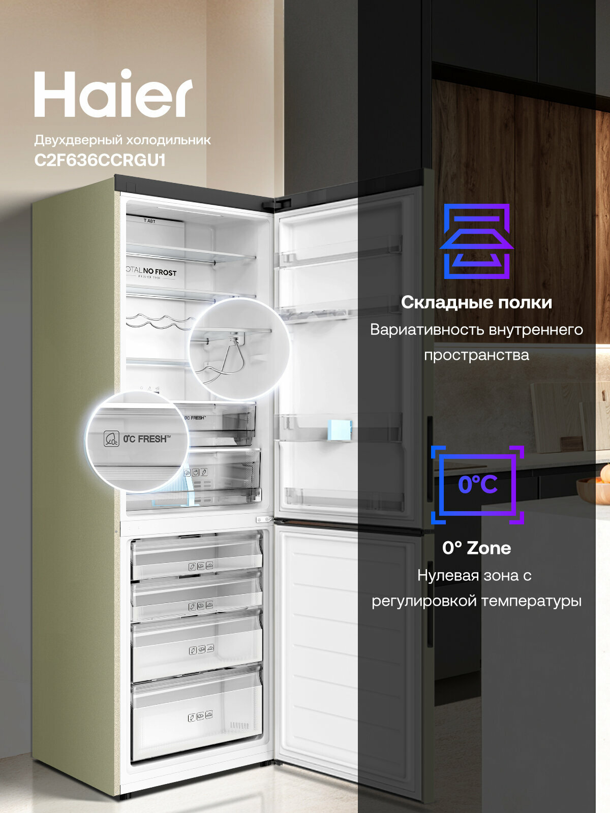 Купить Холодильник двухкамерный Haier C2F636CCRGU1, бежевый, No Frost, A+, Wi-Fi с доставкой по всей России.
